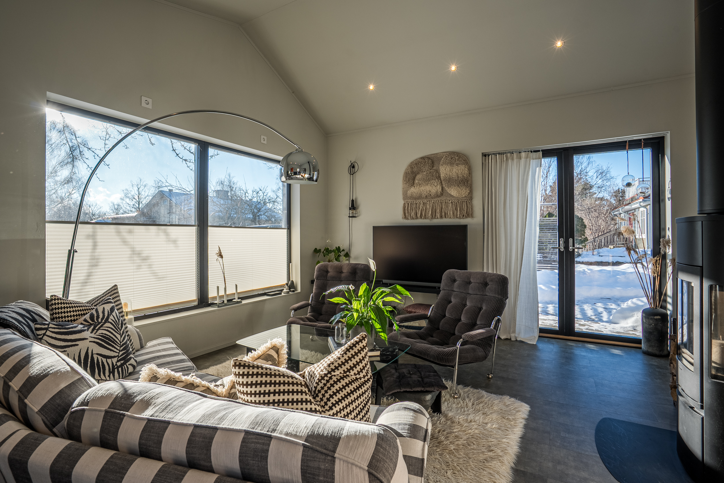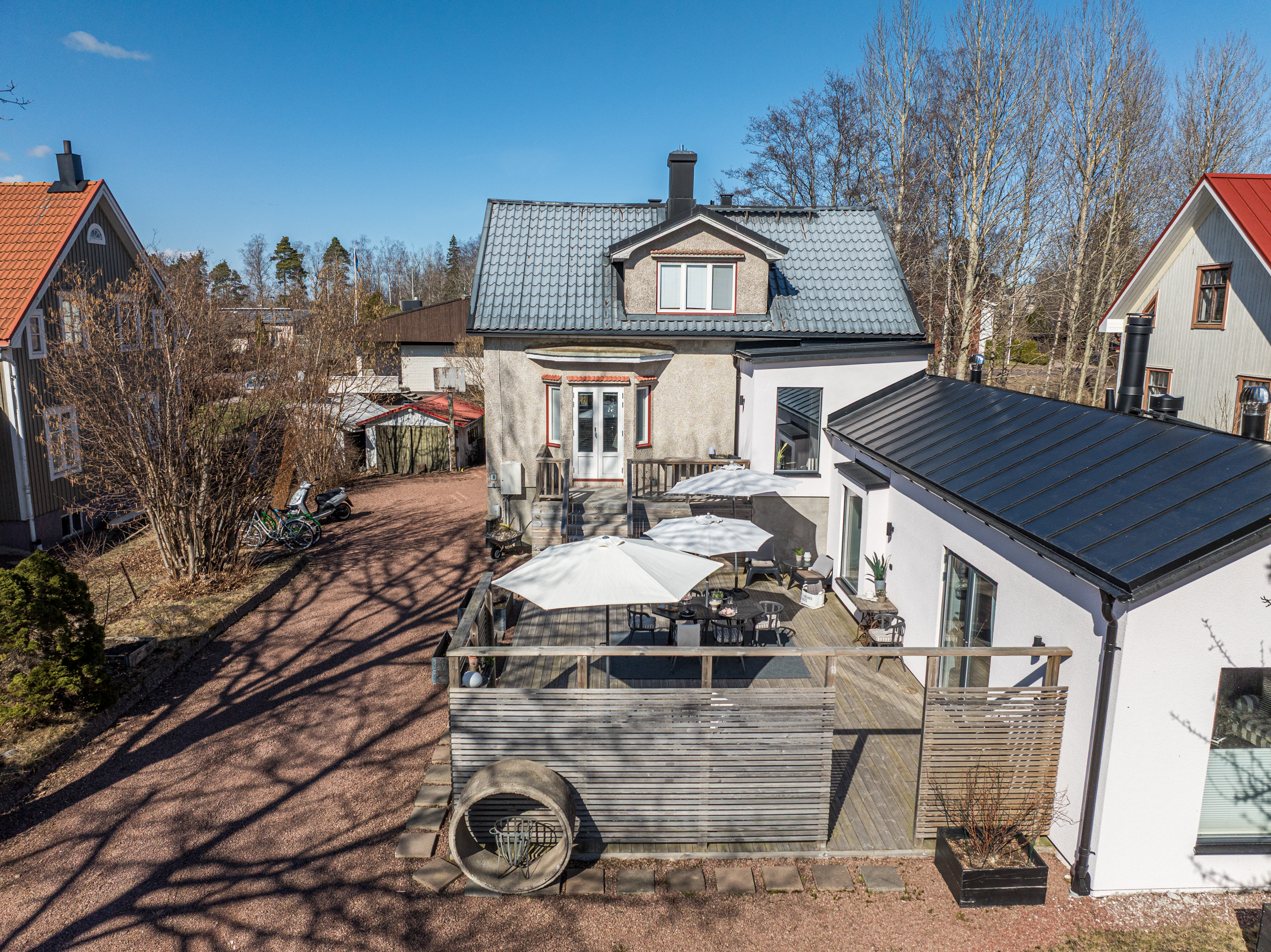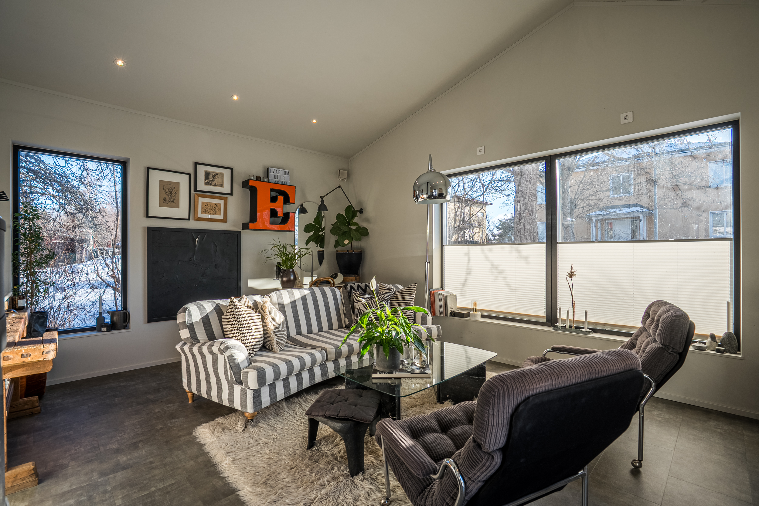 Bostadshuset har sina rötter i 1950-talet och bär fortfarande den stabila grundkänslan från epoken. Samtidigt har huset utvecklats och moderniserats med respekt för helheten. Resultatet är ett hem där klassisk byggkvalitet möter modern arkitektur.