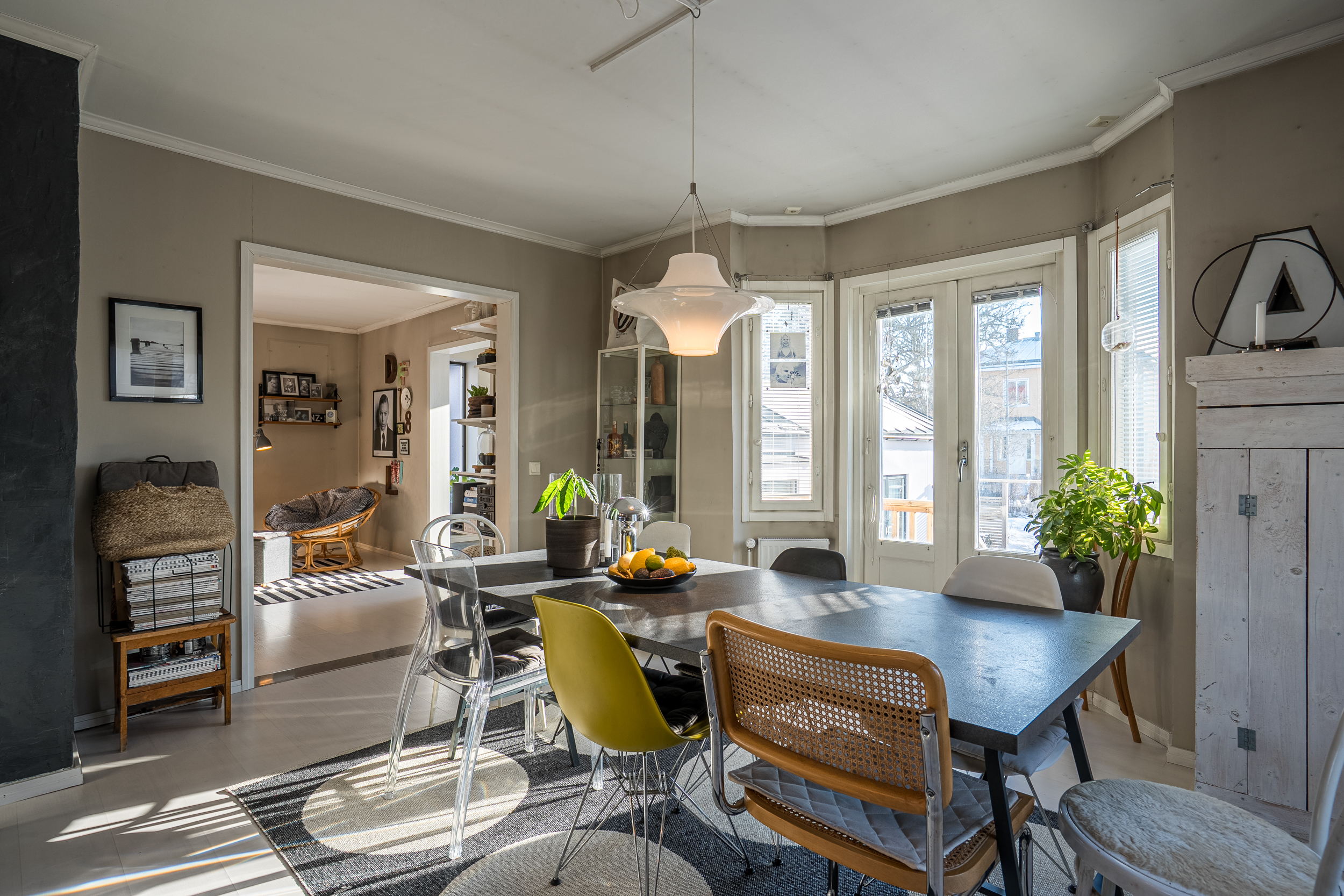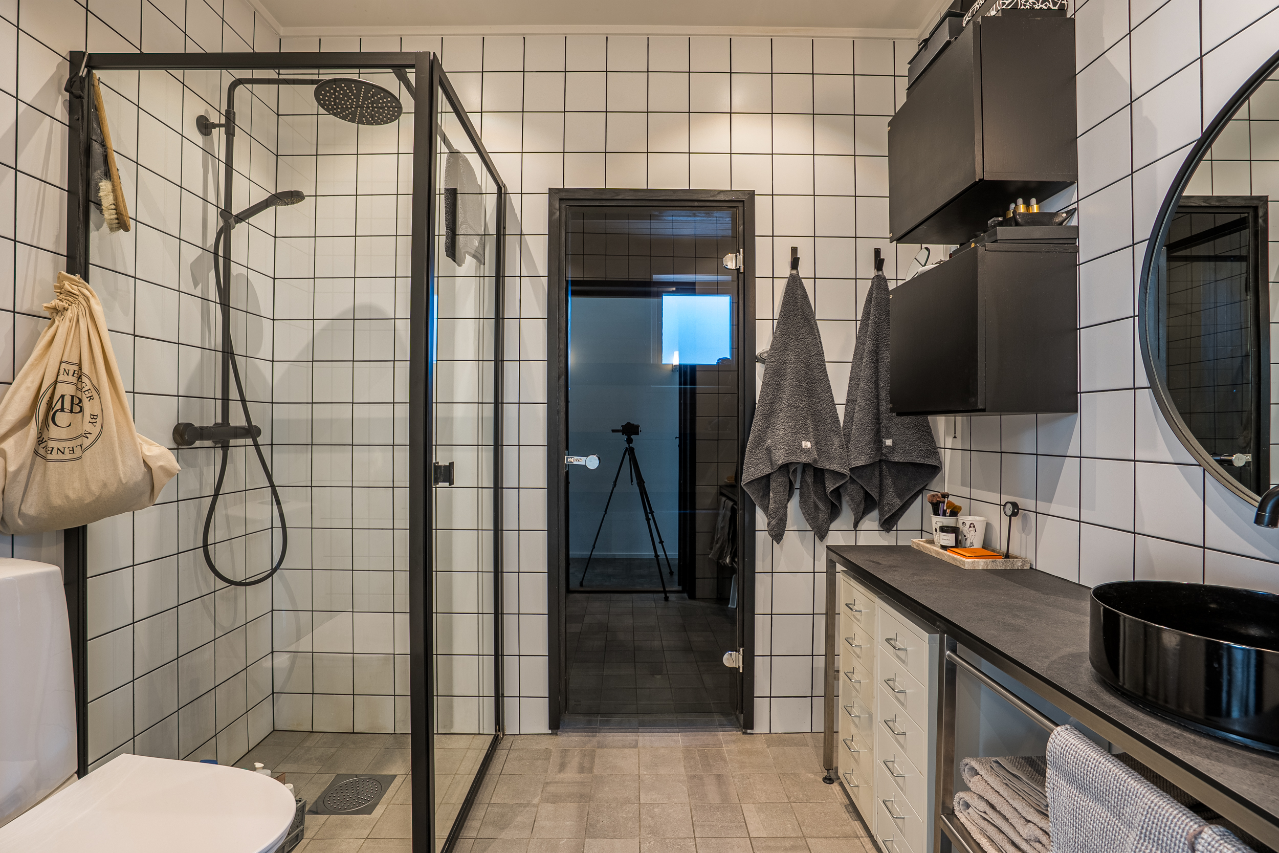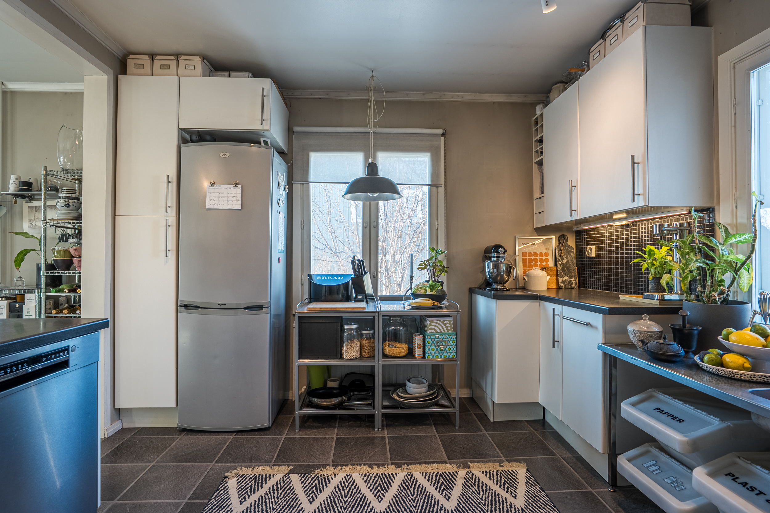 Bostadshuset har sina rötter i 1950-talet och bär fortfarande den stabila grundkänslan från epoken. Samtidigt har huset utvecklats och moderniserats med respekt för helheten. Resultatet är ett hem där klassisk byggkvalitet möter modern arkitektur.