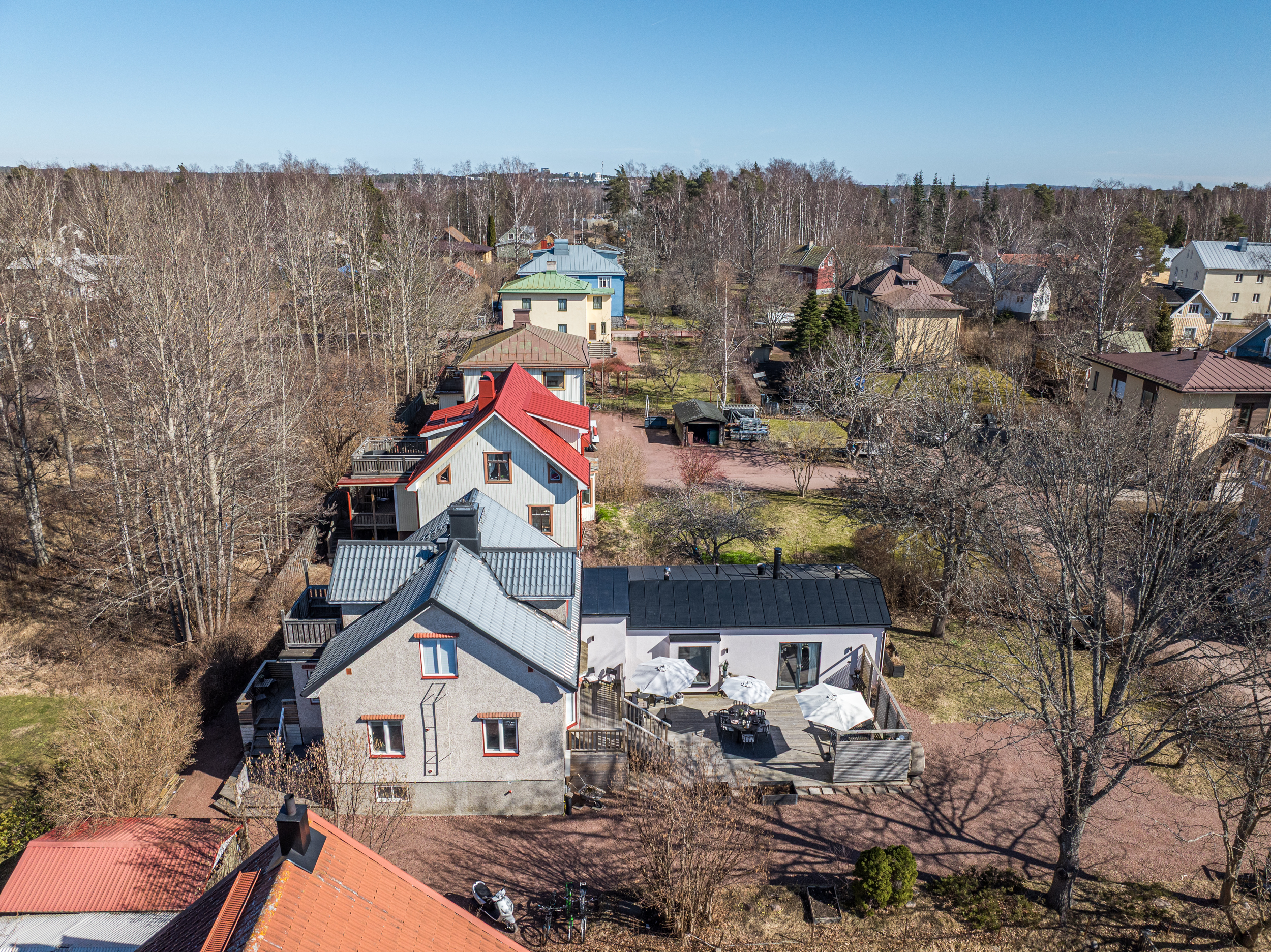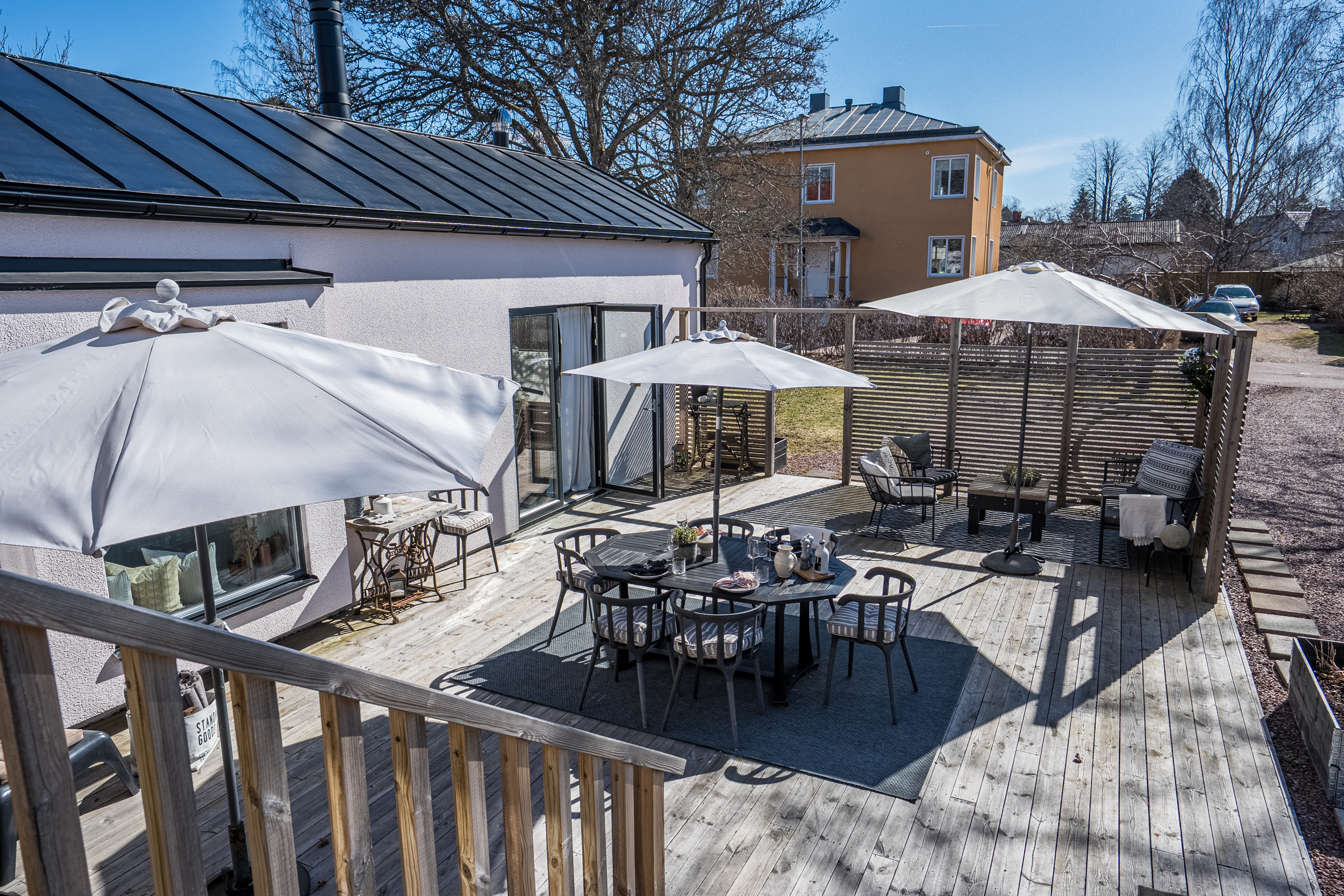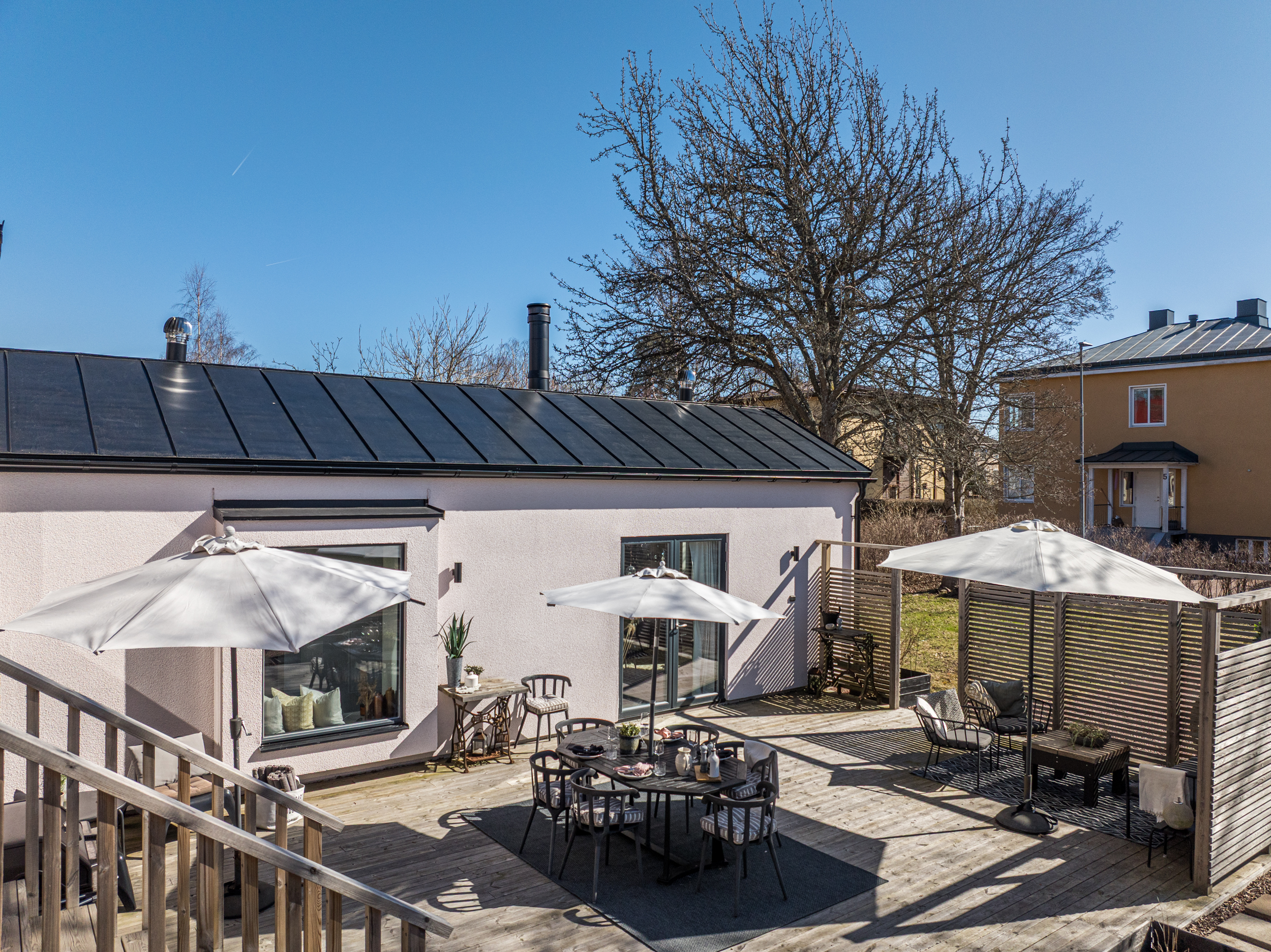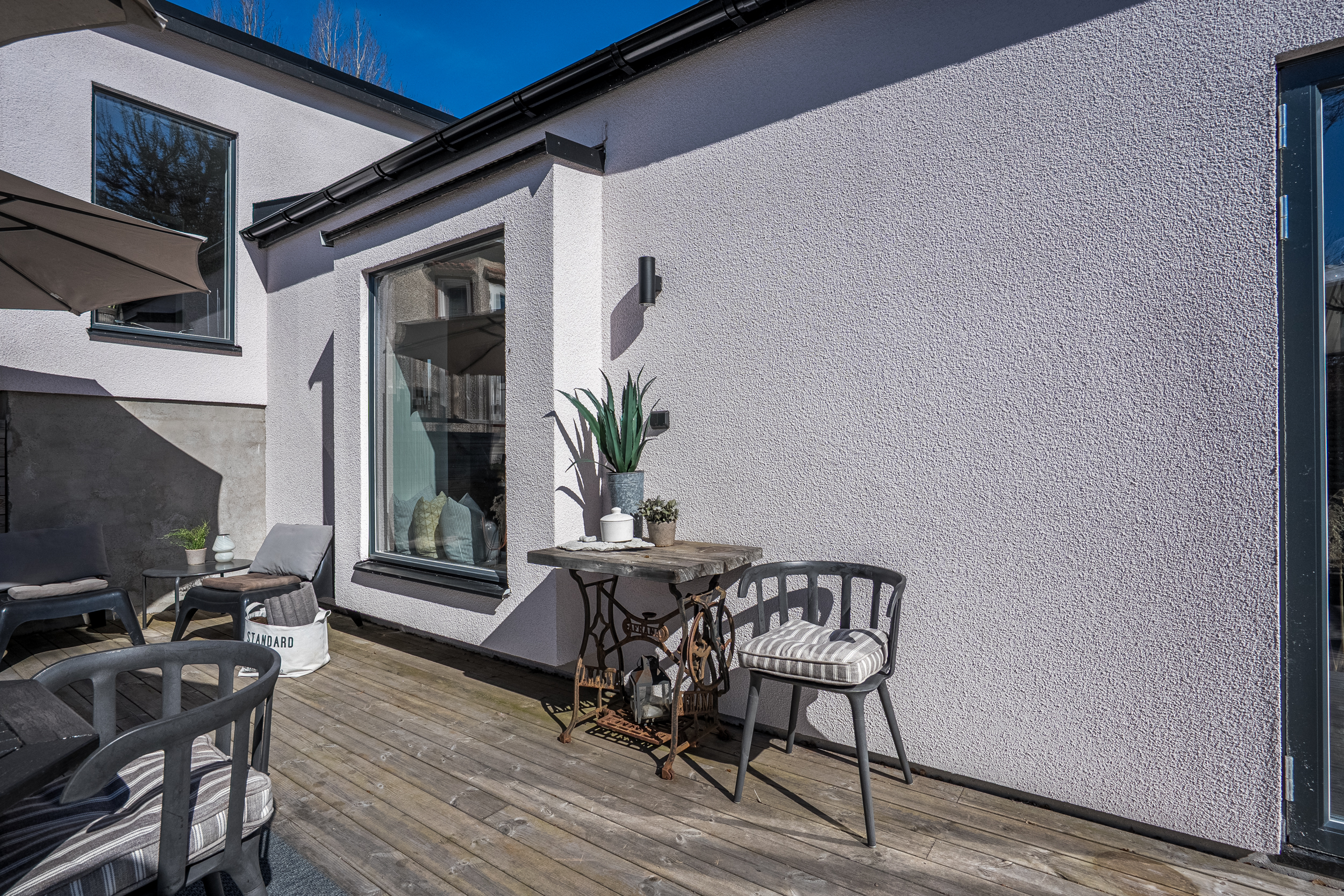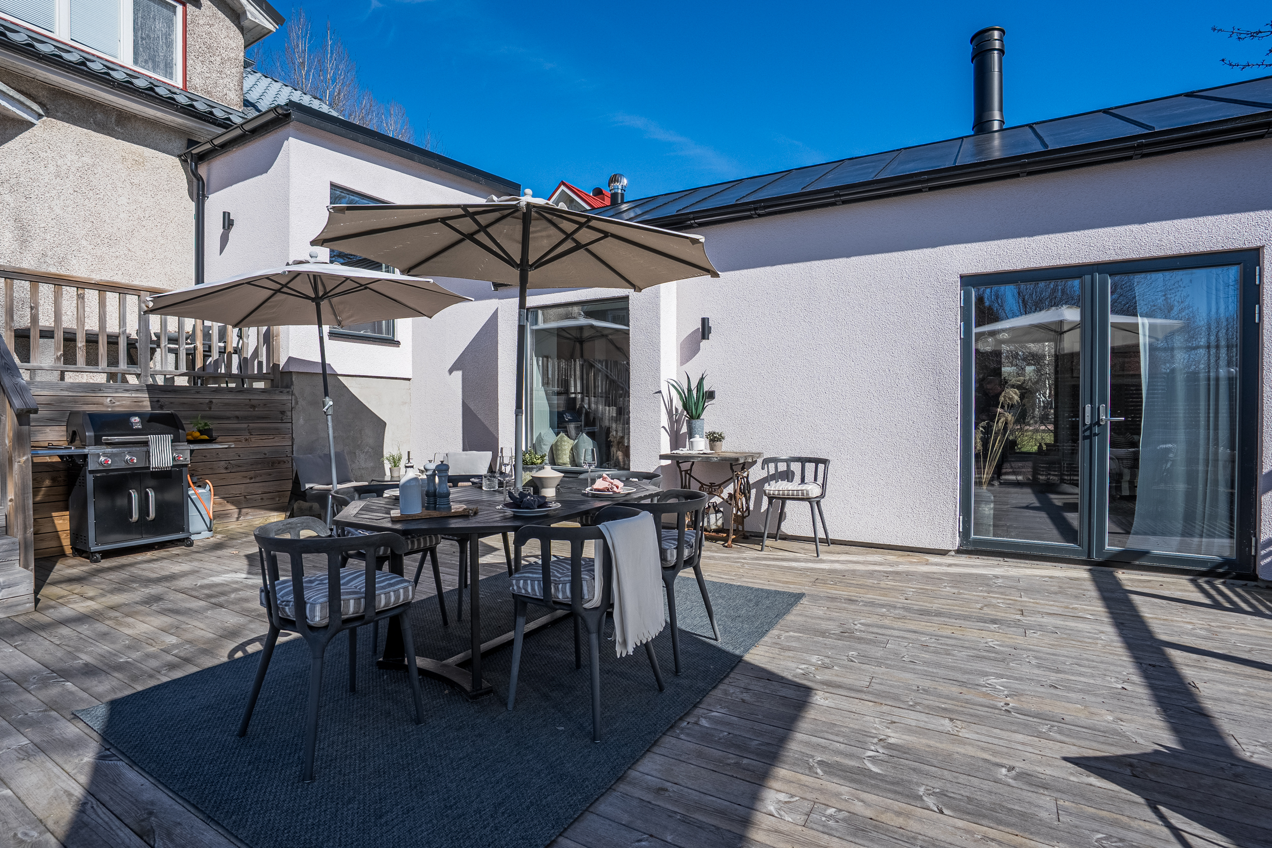 Den totala ytan uppgår till cirka 210 m² fördelat över tre plan. Hemmet erbjuder generösa sociala ytor i entréplanet, en privat masterdel i tillbyggnaden och en tydligt avskild sovrumsdel på övre plan. Detta är ett hem för den som uppskattar genomtänkt arkitektur, skyddade uteplatser och ett lugnt läge – utan att ge avkall på närheten till stadens puls. Backgatan 8 är inte bara en adress. Det är en mycket väl sammanhållen helhet där 1950-talets stabilitet möter 2020-talets arkitektur.