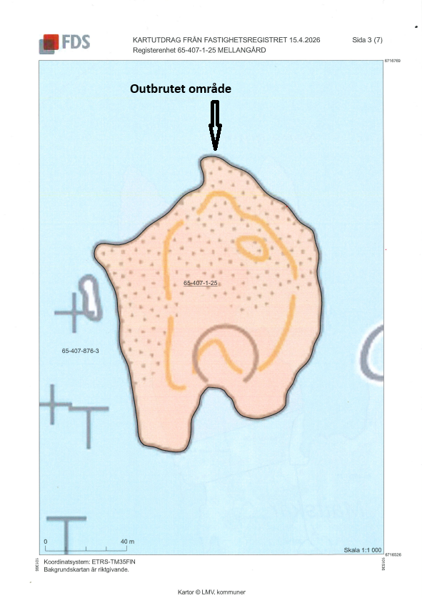 Fastighetsbeteckning: Ett outbrutet område av fastigheten Mellangård RNr 1:25