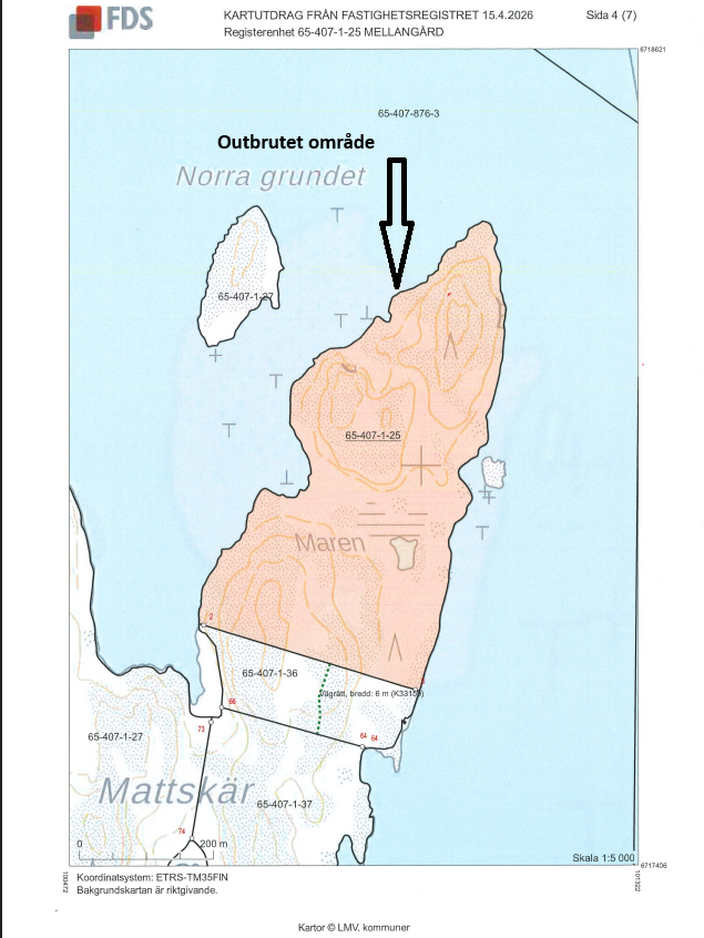 Ett större markområde på Mattskär om ca 16,7 ha – pris 125 000 euro.