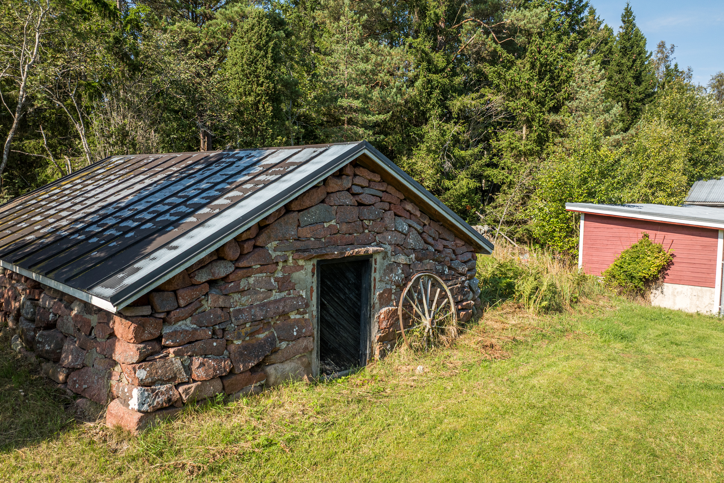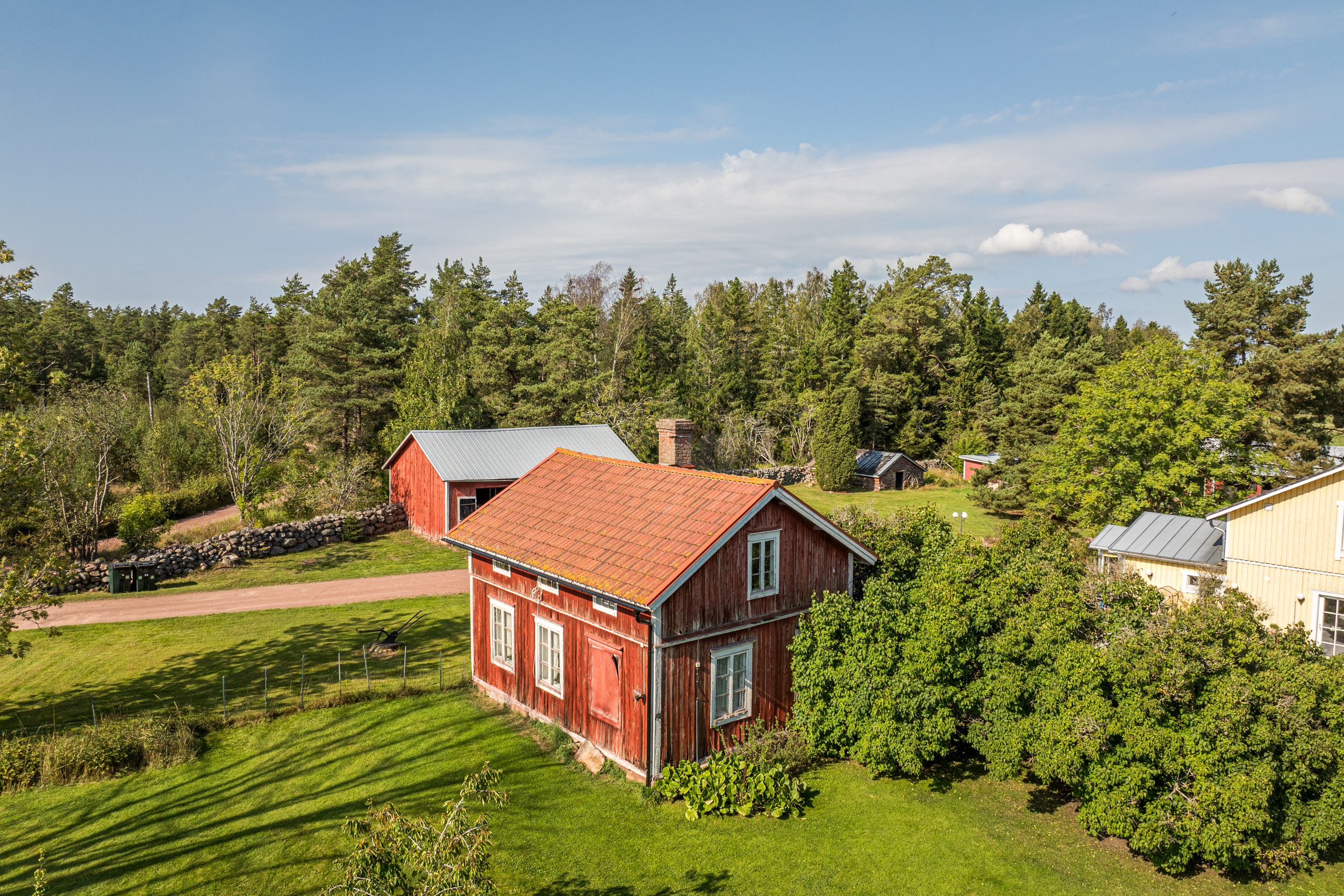 Fastigheten är totalt 4,69 ha stor varav en del består av gräsbelagd tomtmark runt bostadshus, lillstuga och förråd/vedlider/garagebyggnad. Resten är i direkt anslutning till stallbyggnaden som ligger lite längre in på den sammanhängande fastigheten. Bostadshusets placering är således väldigt privat gentemot stallet. På fastigheten finns även en välbehållen jordkällare och en liten stuga som idag används som extra förvaring. Lillstugan som ligger vid bostadshuset är väldigt charmig och har stor potential för den händiga.
