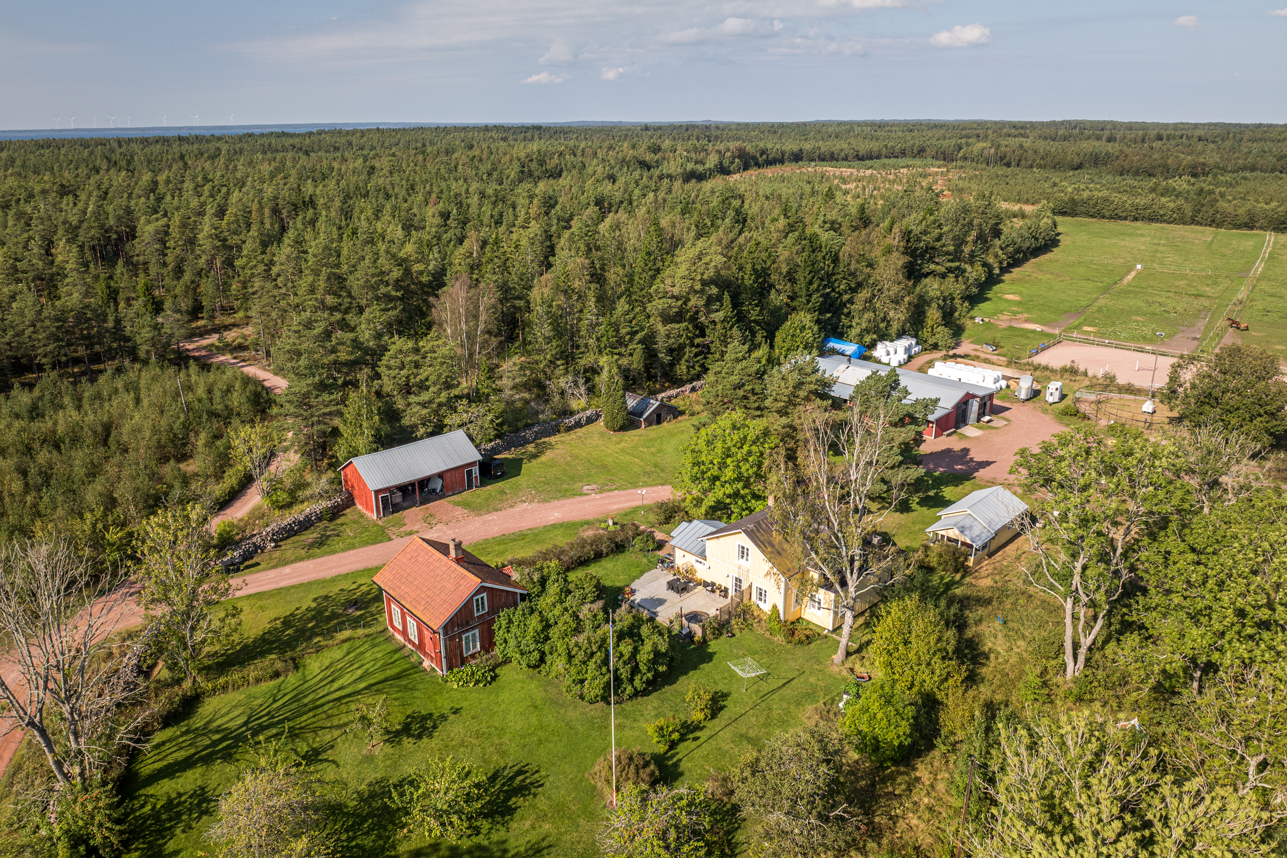 Välkomna till denna fina plats i Djurvik, Jomala som erbjuder ett privat läge både för djur och människor. Här bor du med naturen som närmsta granne på en väldisponerad hästgård.