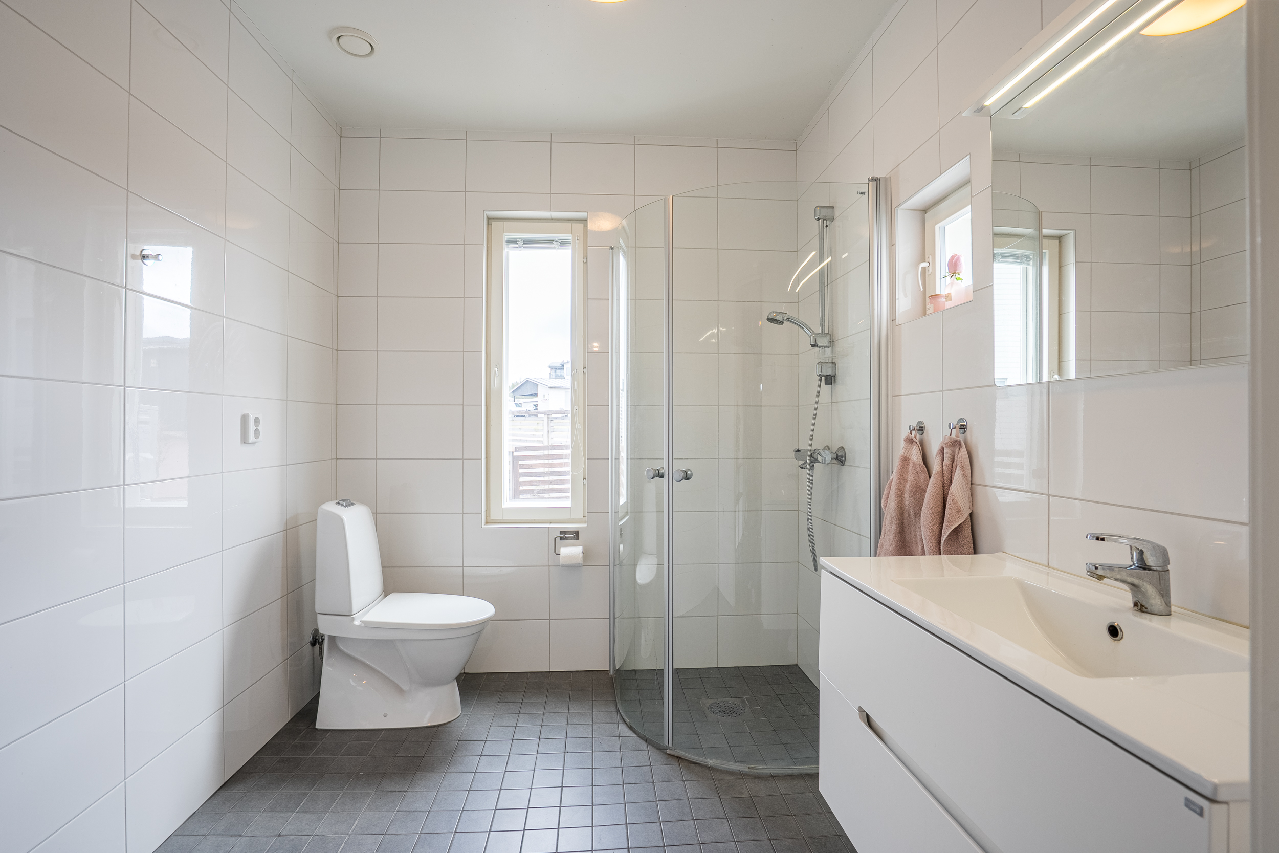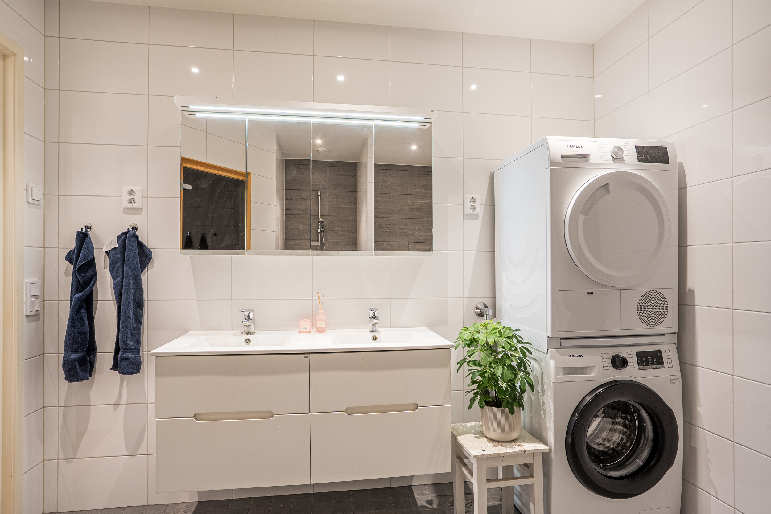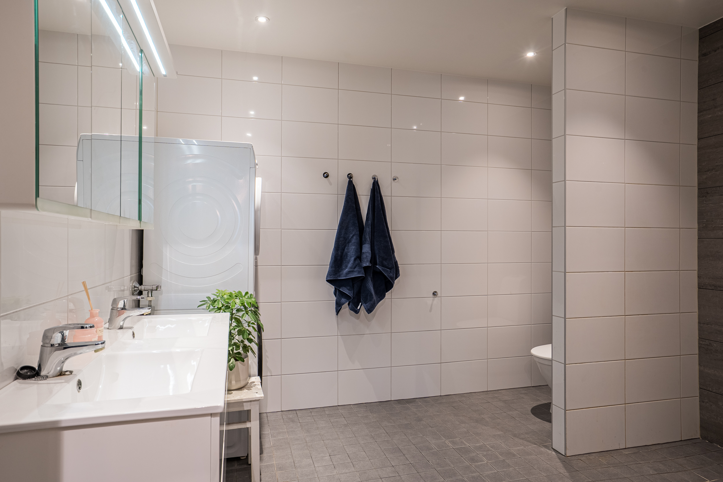 På detta plan finns även en praktisk klädkammare samt en rymlig bastuavdelning med dusch, wc och dubbelhandfat. En väl tilltagen och funktionell del som bidrar till bostadens helhetskomfort.