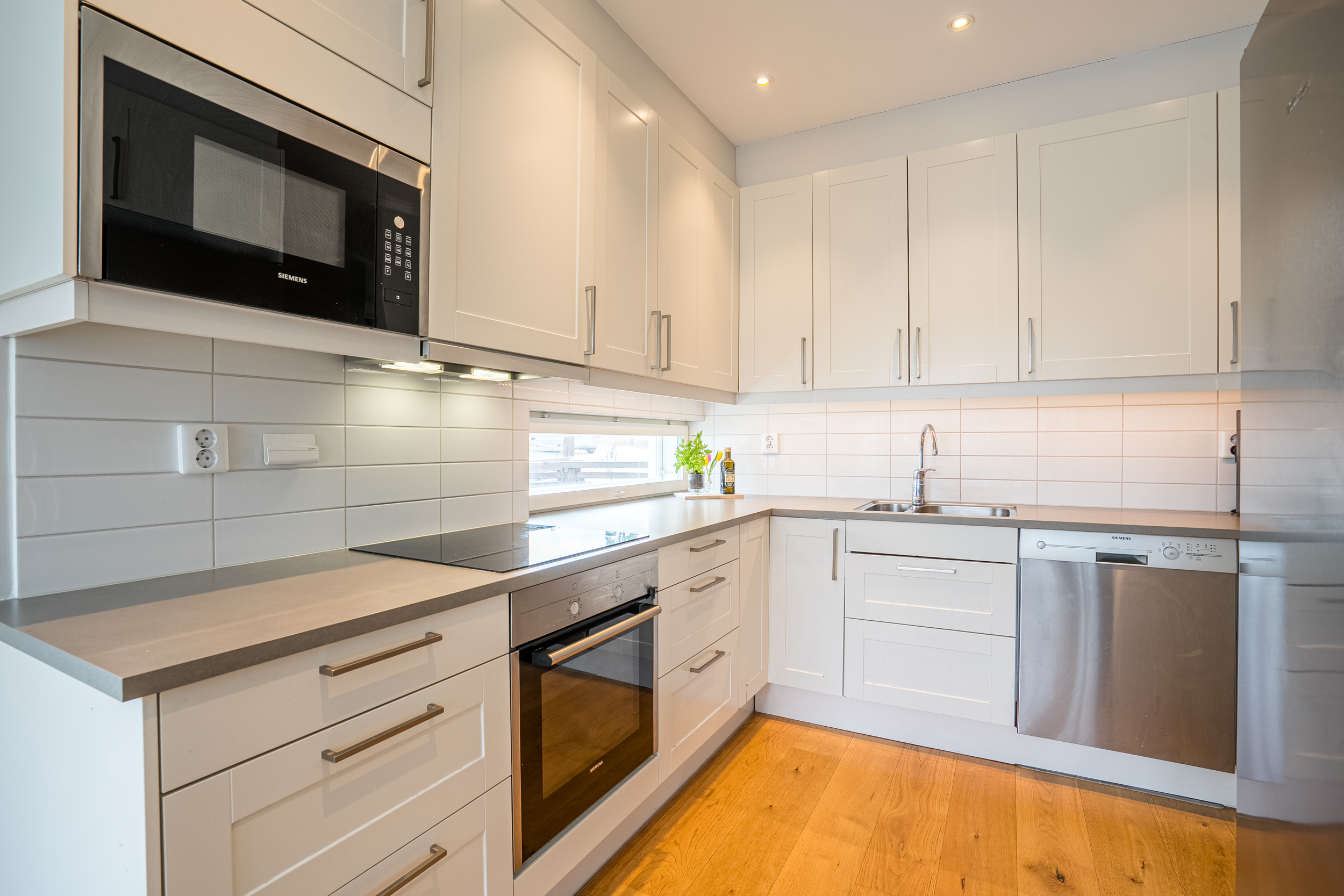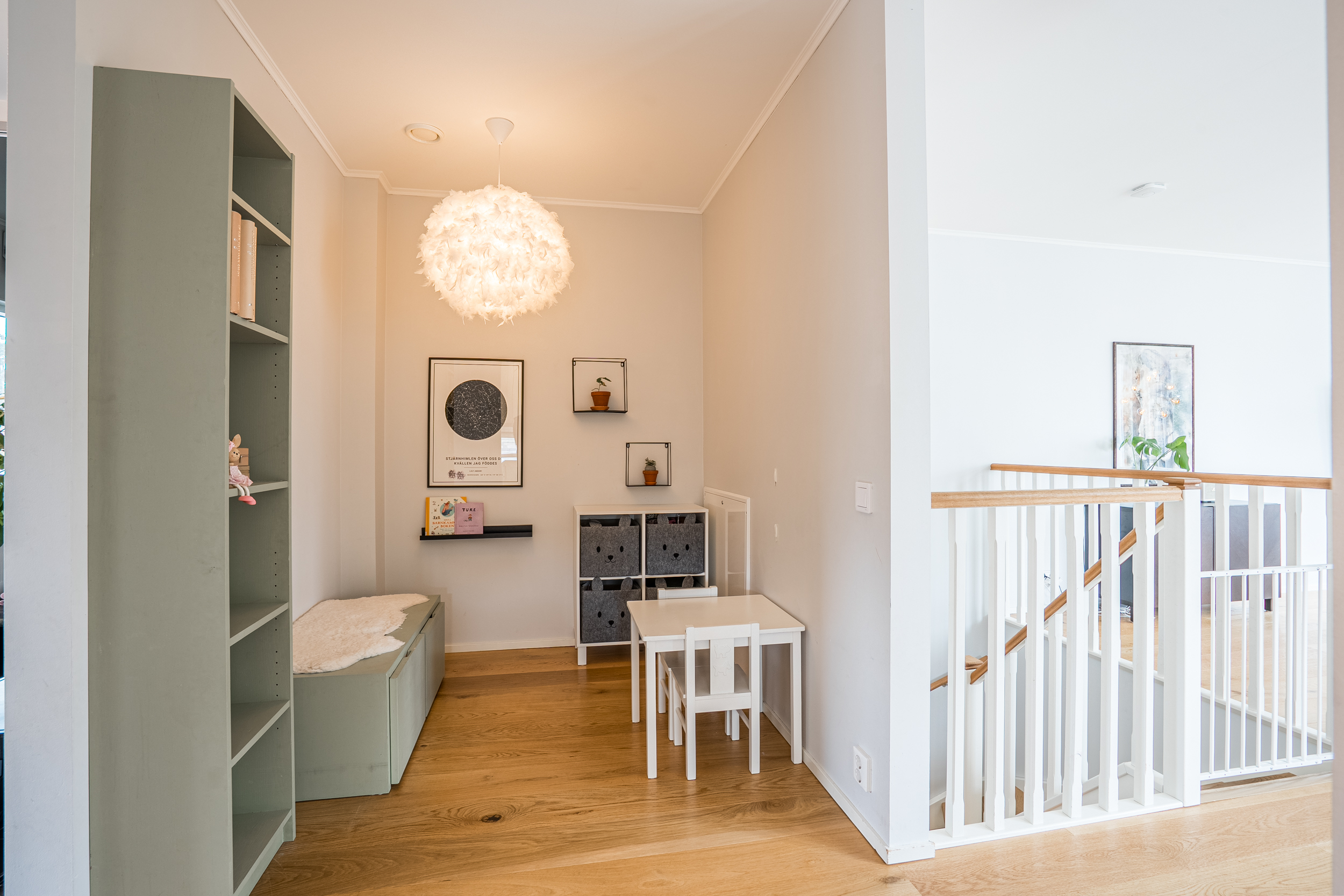 Köket är funktionellt och genomtänkt planerat med goda arbetsförutsättningar och fullgod maskinell utrustning, inklusive inbyggd ugn och mikrovågsugn, diskmaskin samt hel kyl och frys. På detta plan återfinns även ett badrum samt en hall med goda förvaringsmöjligheter. I anslutning till hallen finns ett öppet utrymme som med fördel kan disponeras som hemmakontor, arbetsplats, lekhörna eller annan flexibel yta utifrån behov.