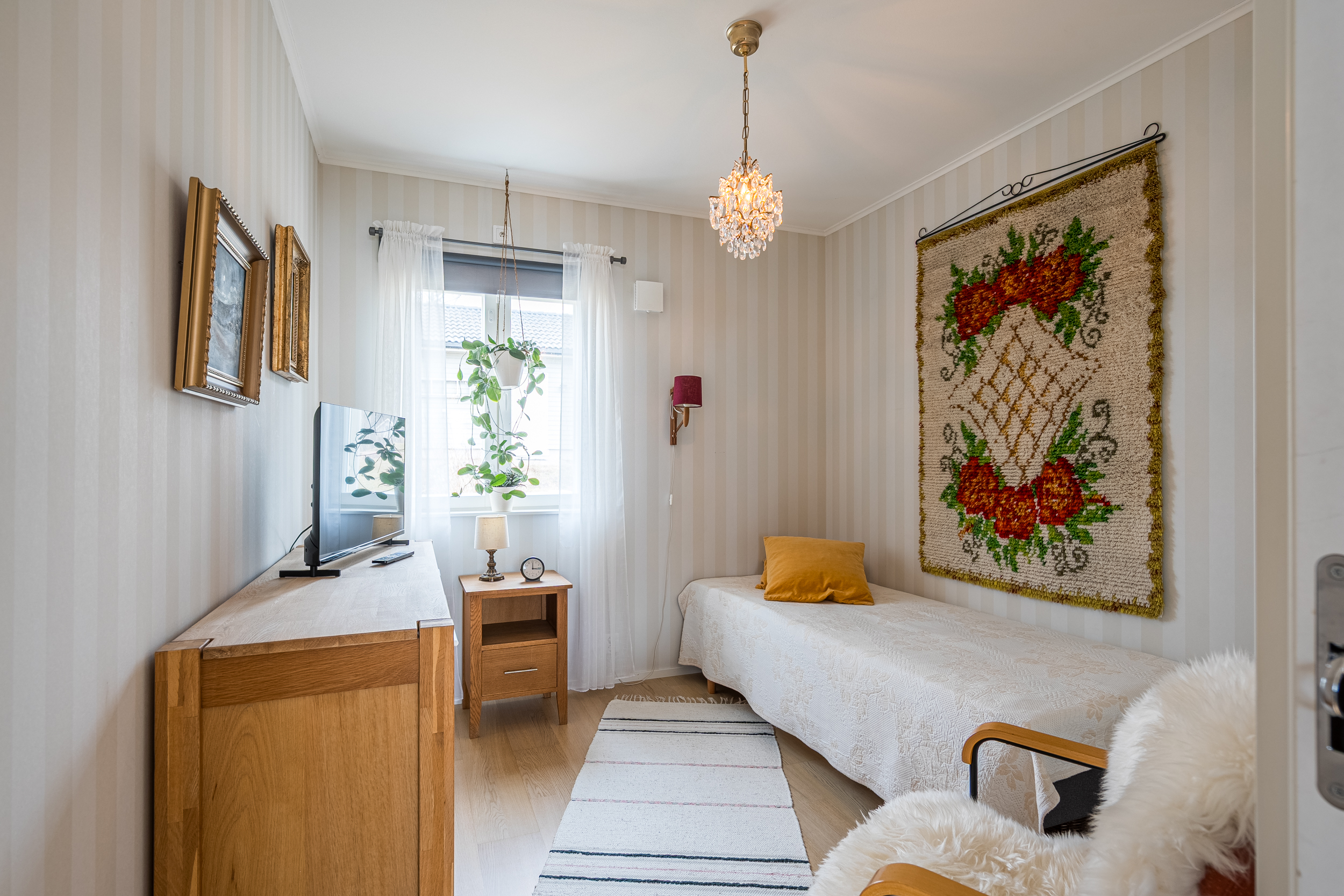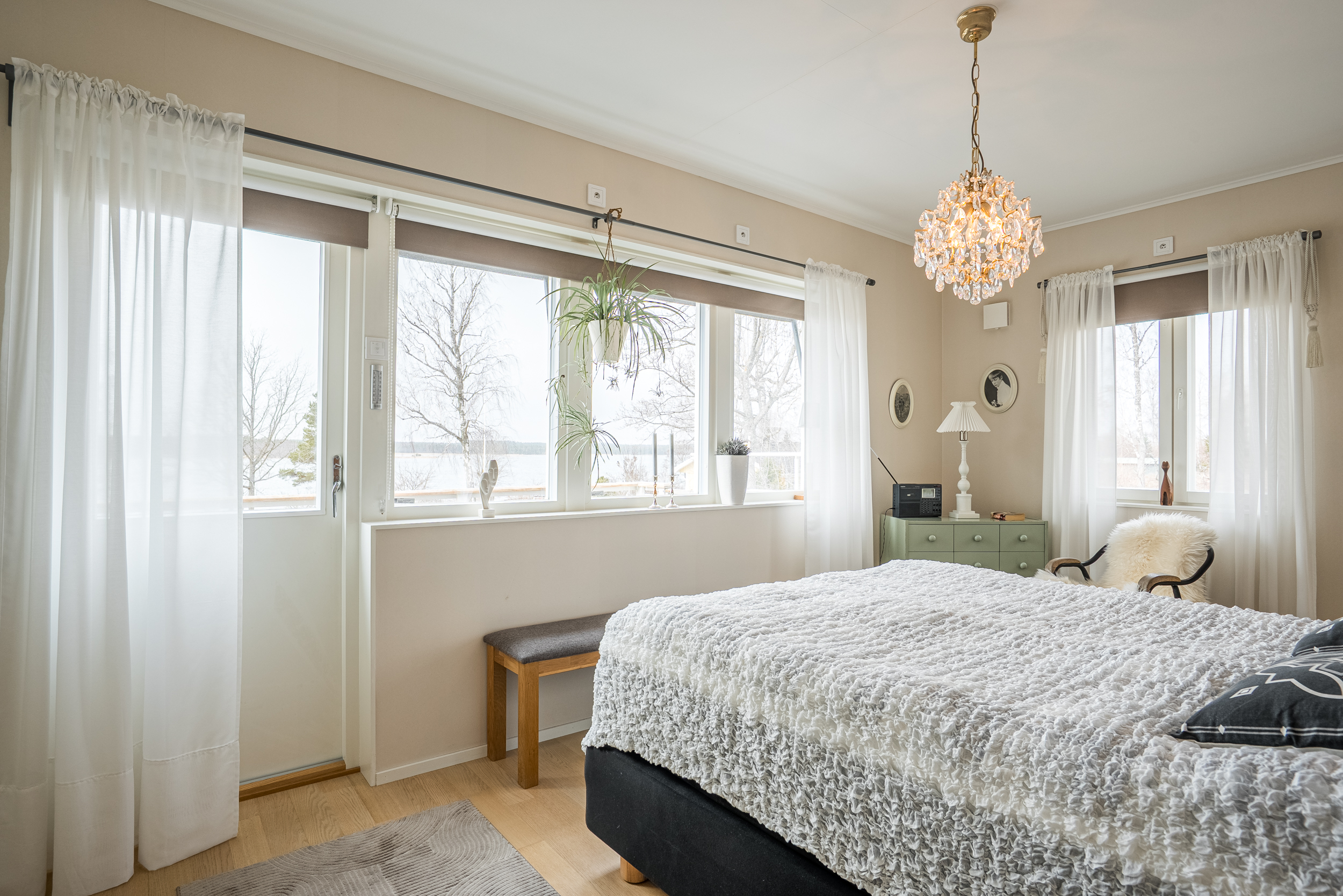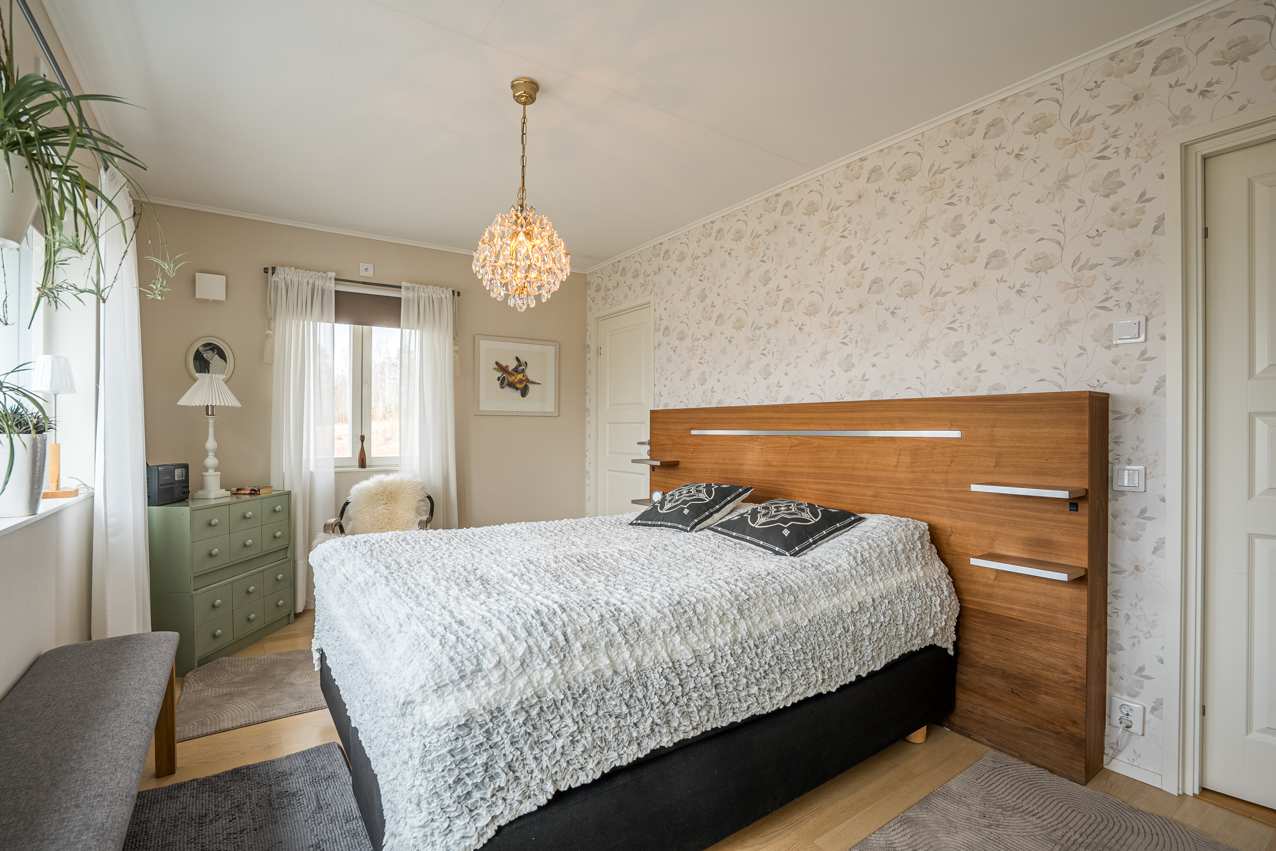 Bostaden inrymmer tre sovrum. Master bedroom om cirka 16 m² erbjuder god förvaring i garderobsvägg, plats för dubbelsäng samt direkt utgång till terrassen. De två övriga sovrummen är välplanerade och placerade med fönster mot öster.