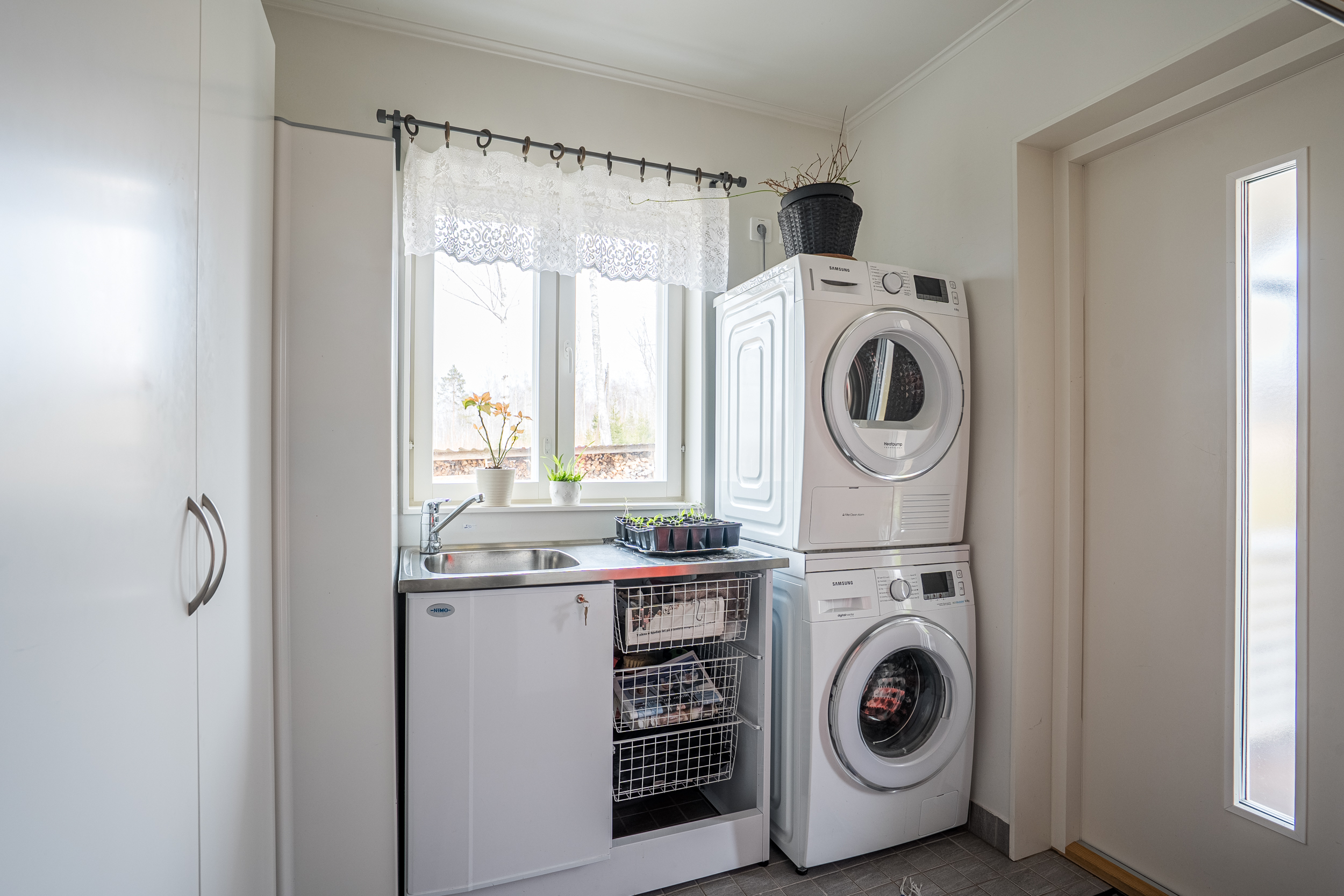 Grovköket är väl dimensionerat med klinkergolv, tvättmaskin och torktumlare i torn, arbetsyta samt egen grovingång. Här finns även varmvattenberedare installerad.