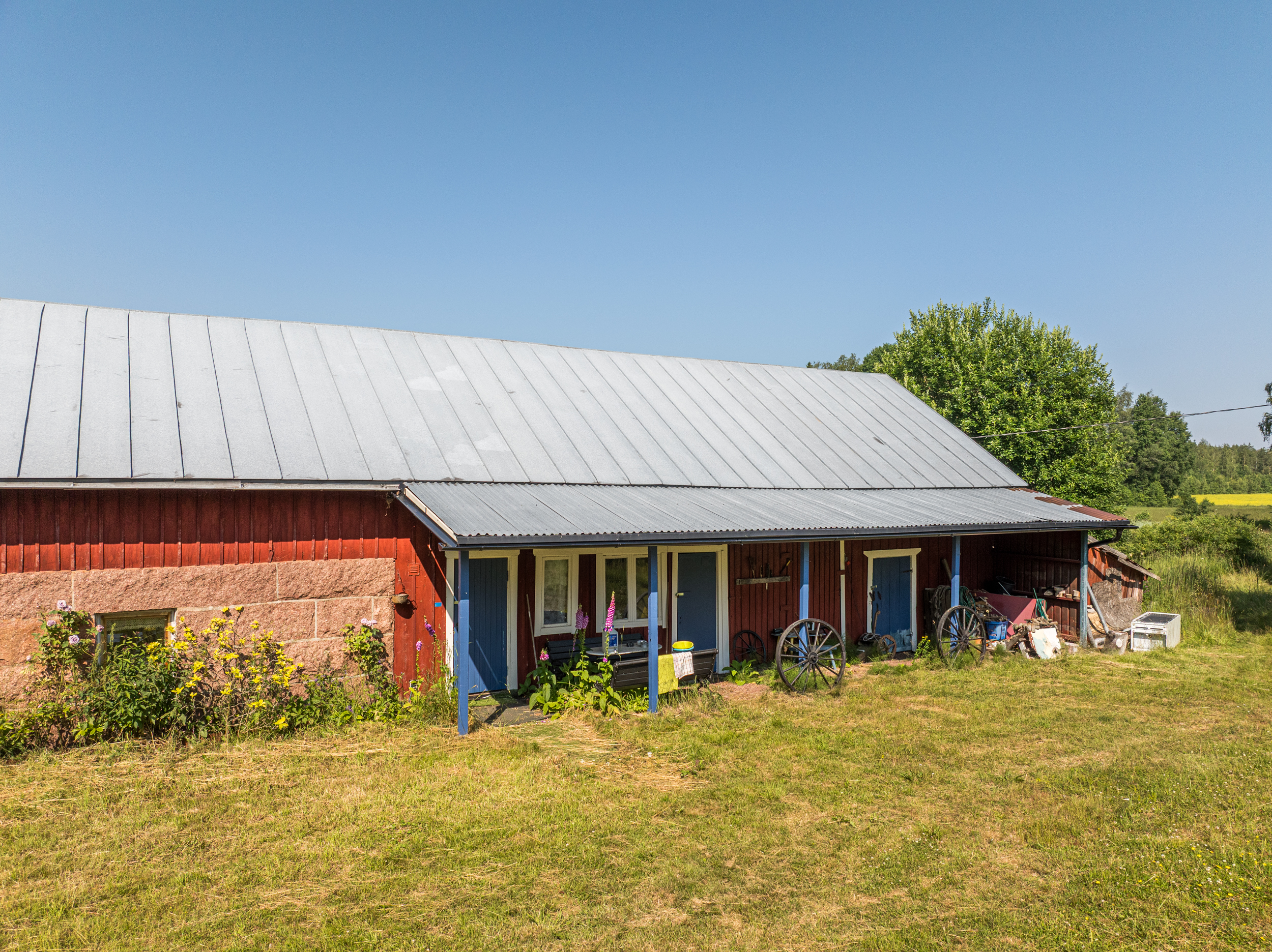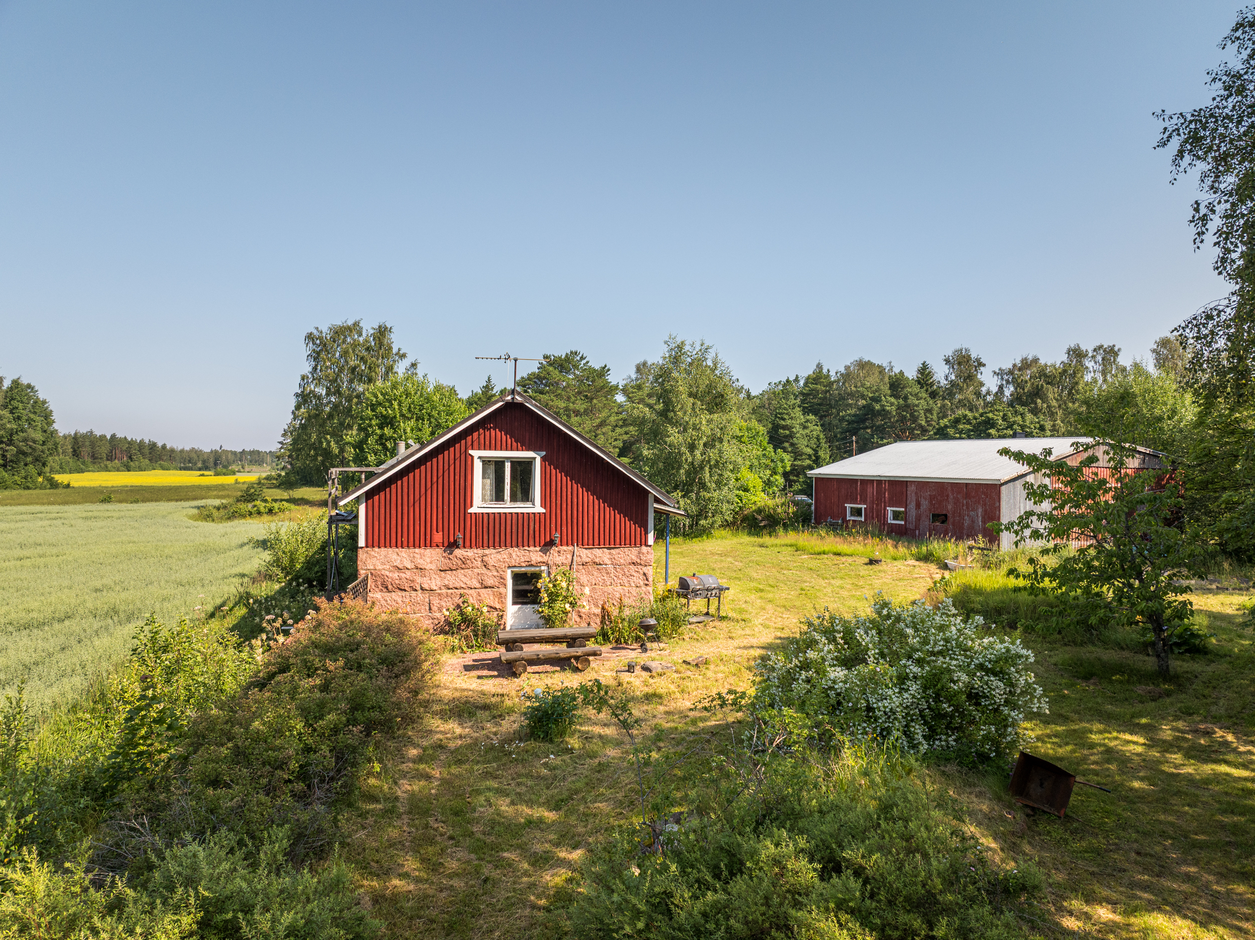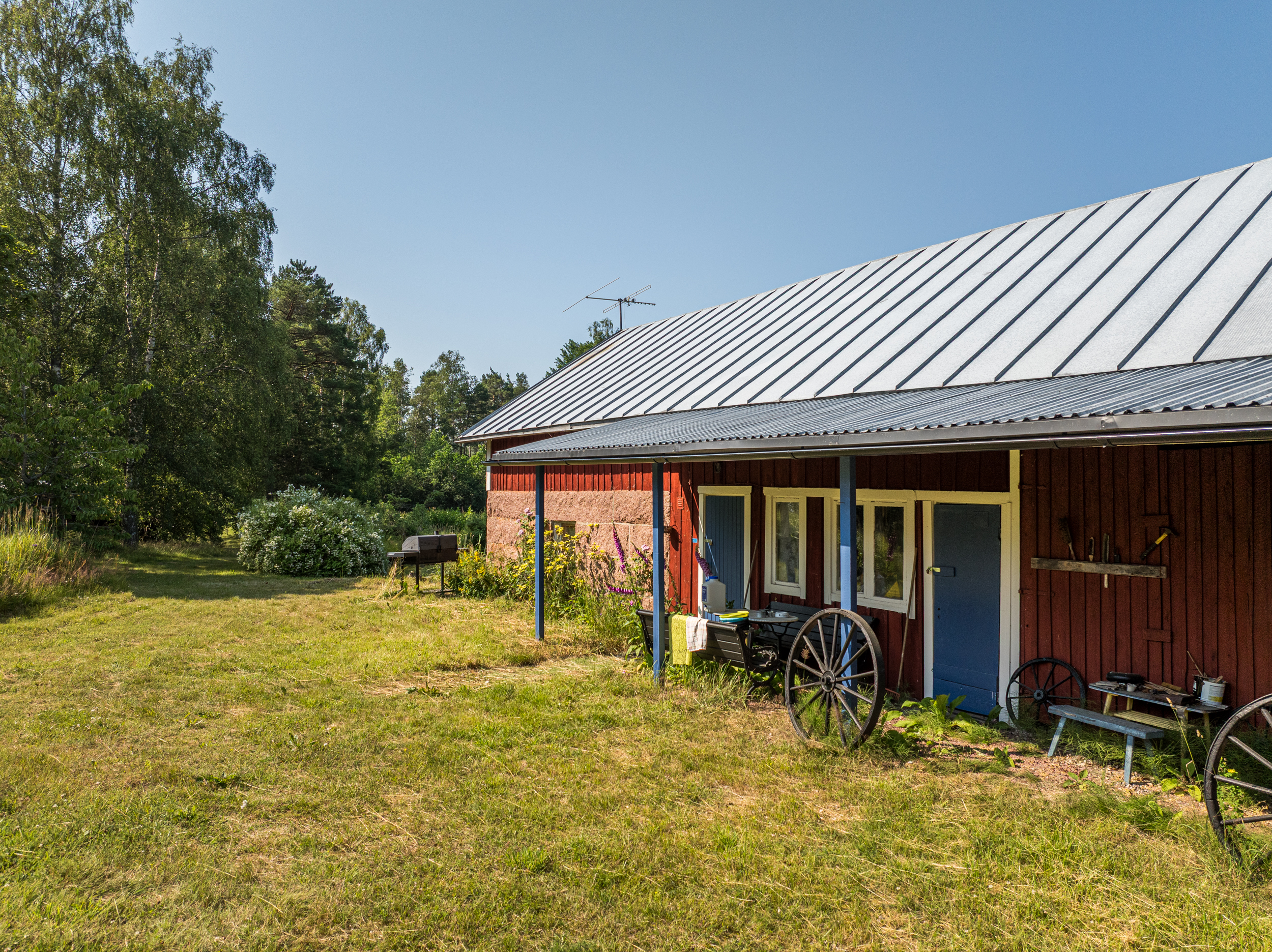 Fastigheten består av en ombyggd ladugård som redan idag erbjuder ett enkelt och funktionellt boende med stor utvecklingspotential. Entréplanet välkomnar med ett rymligt kök där matplatsen har direkt access till gårdens soliga uteplats i söderläge – en perfekt plats för sommarens måltider och umgänge. Här finns även wc med förbränningstoalett, handfat och duschmöjligheter. På övre planet väntar ett vardagsrum och ett sovutrymme som ramas in av rustika detaljer och ljus från omgivande grönska. I byggnaden finns dessutom en bastu och ett separat utrymme som med fördel kan användas som förråd eller verkstad.