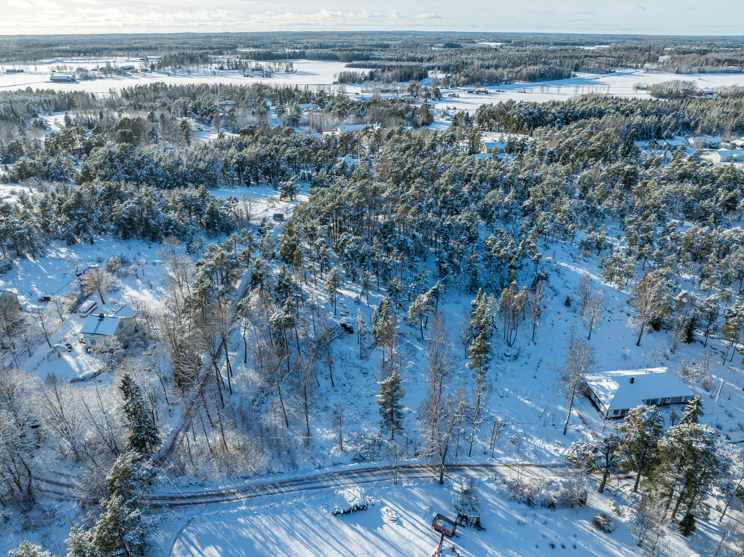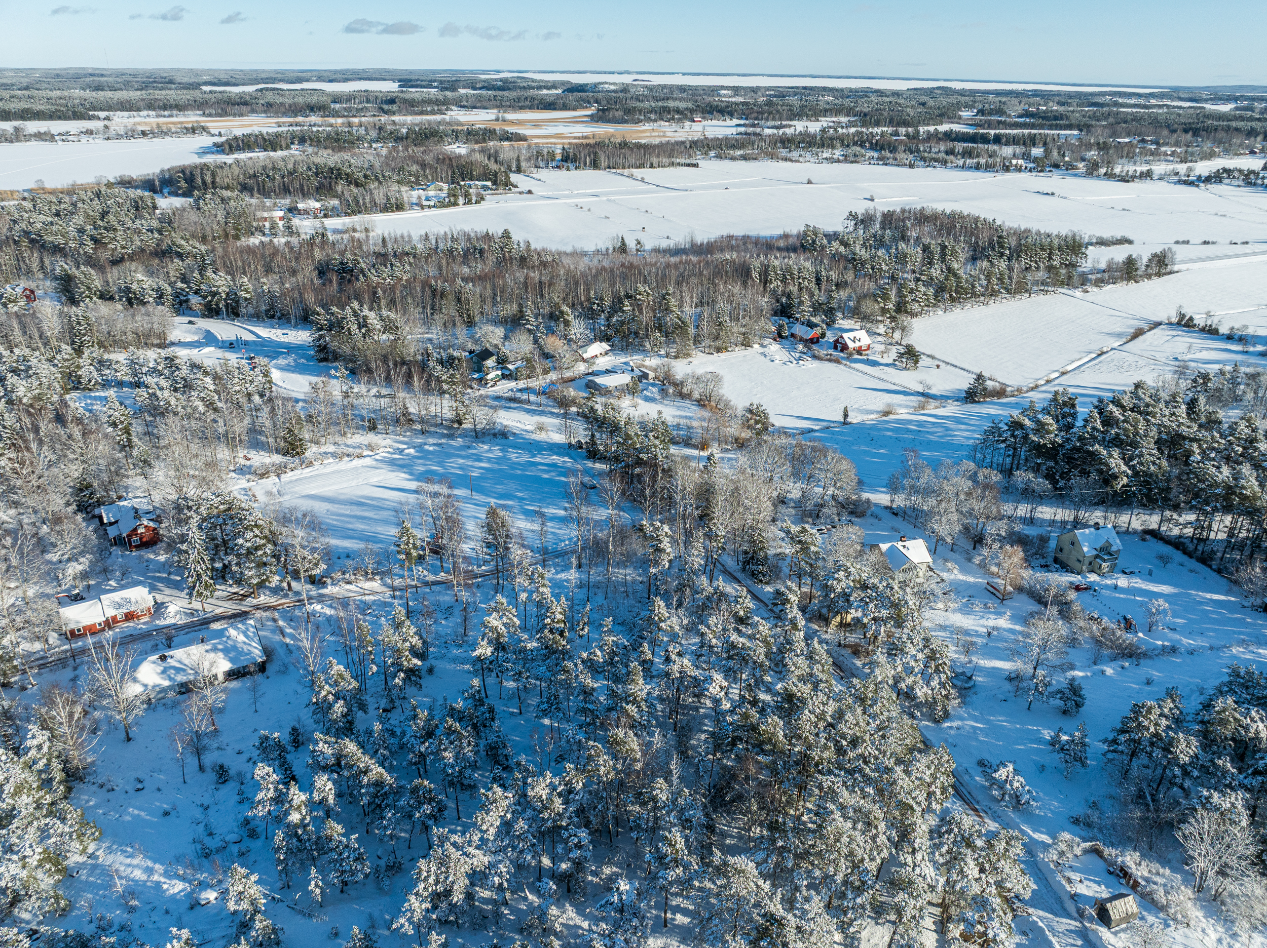 Teknik: Fiber finns i området och likaså el. Enligt 2026-årsprislistor och intag/anslutning: fiber 495 €, el 25 Amps 3 389 €
