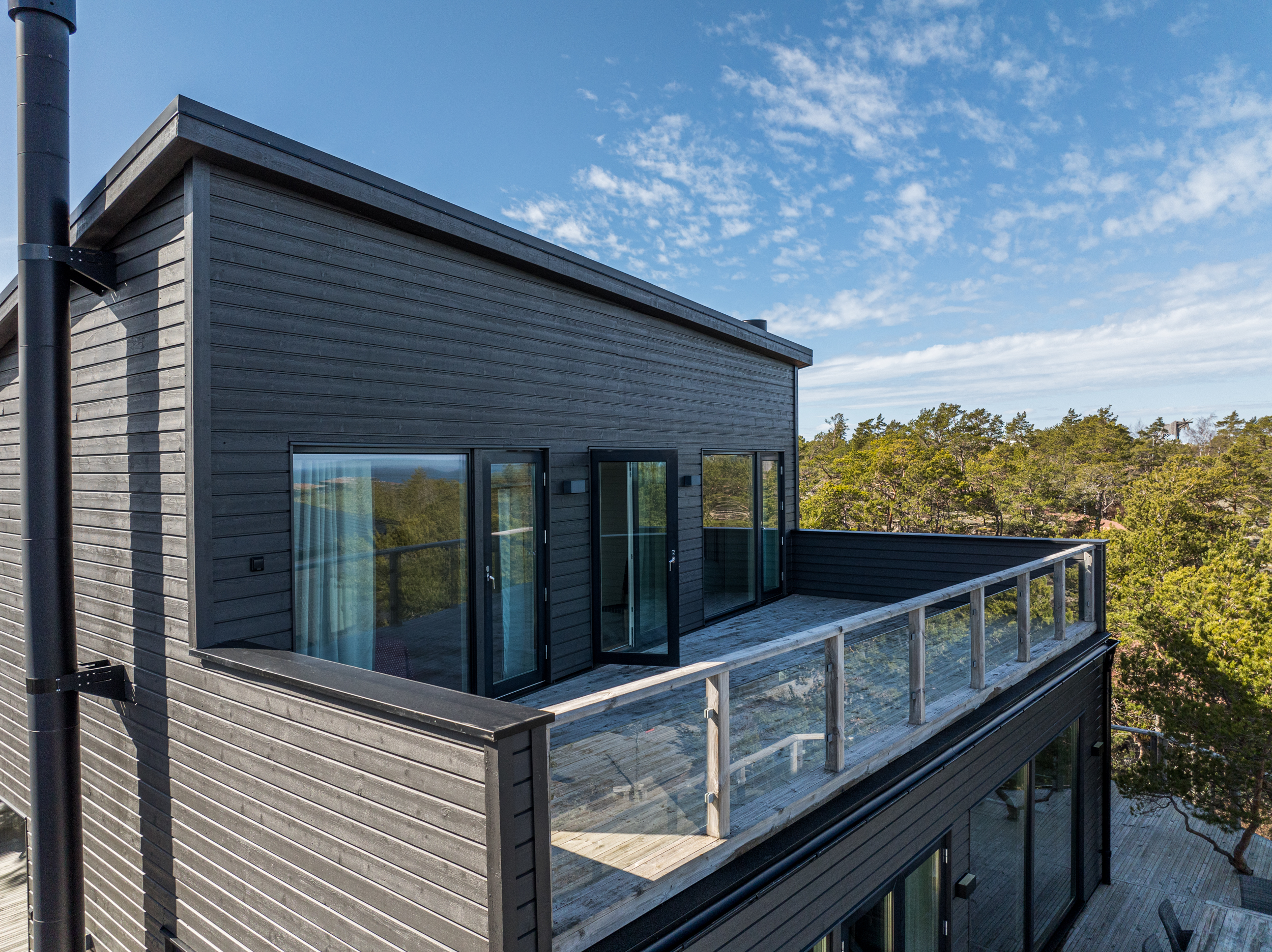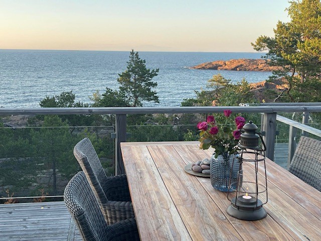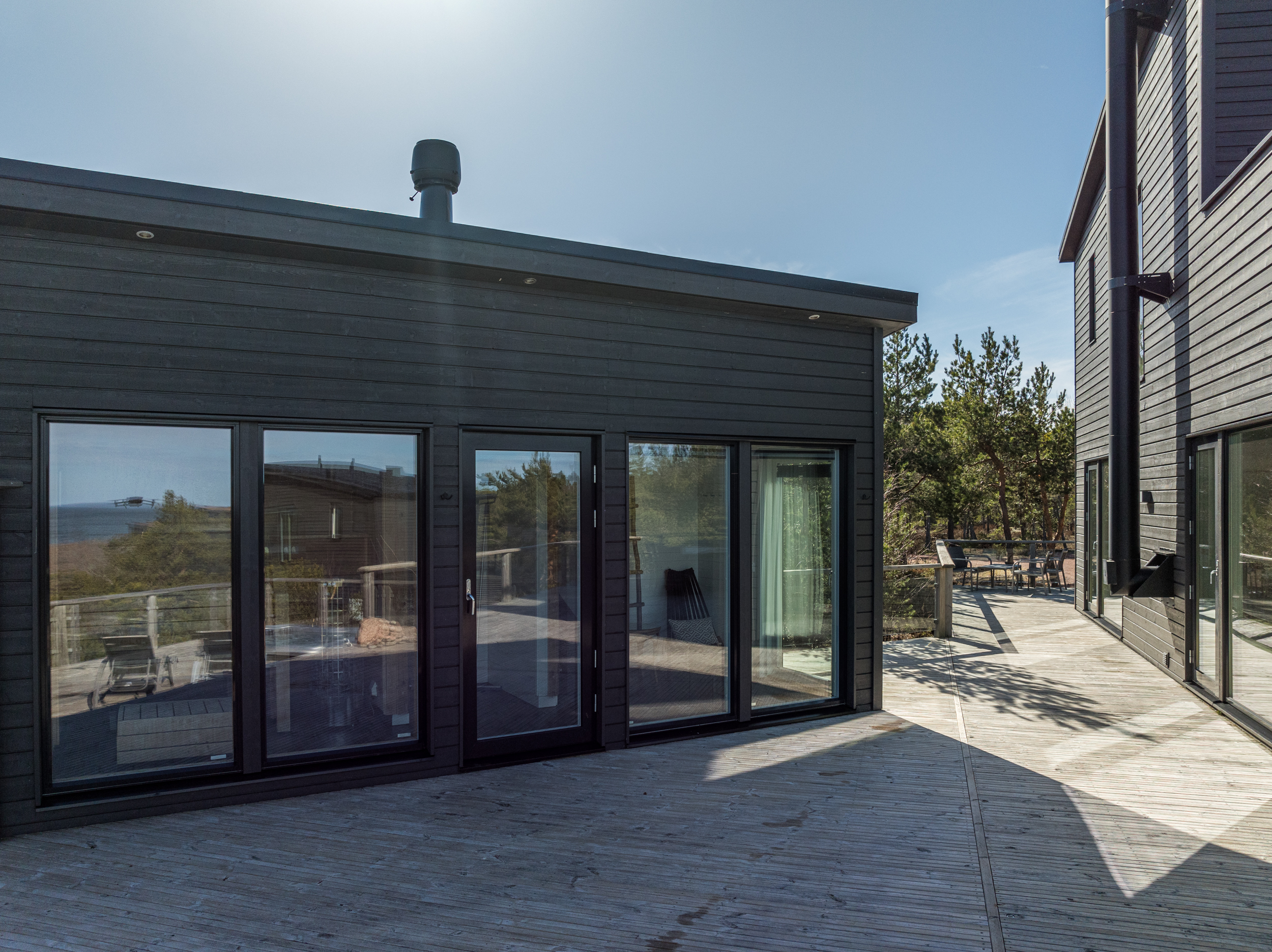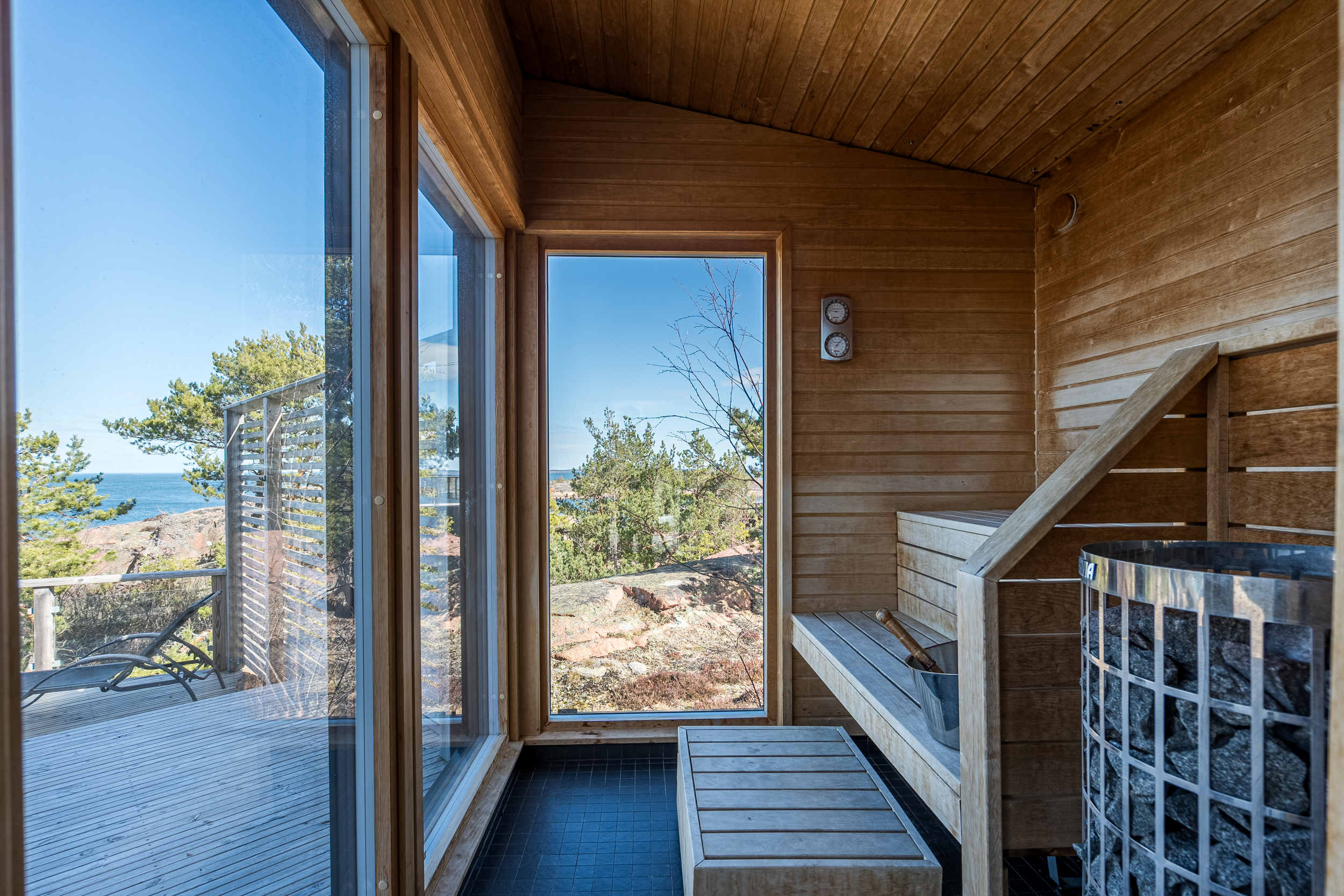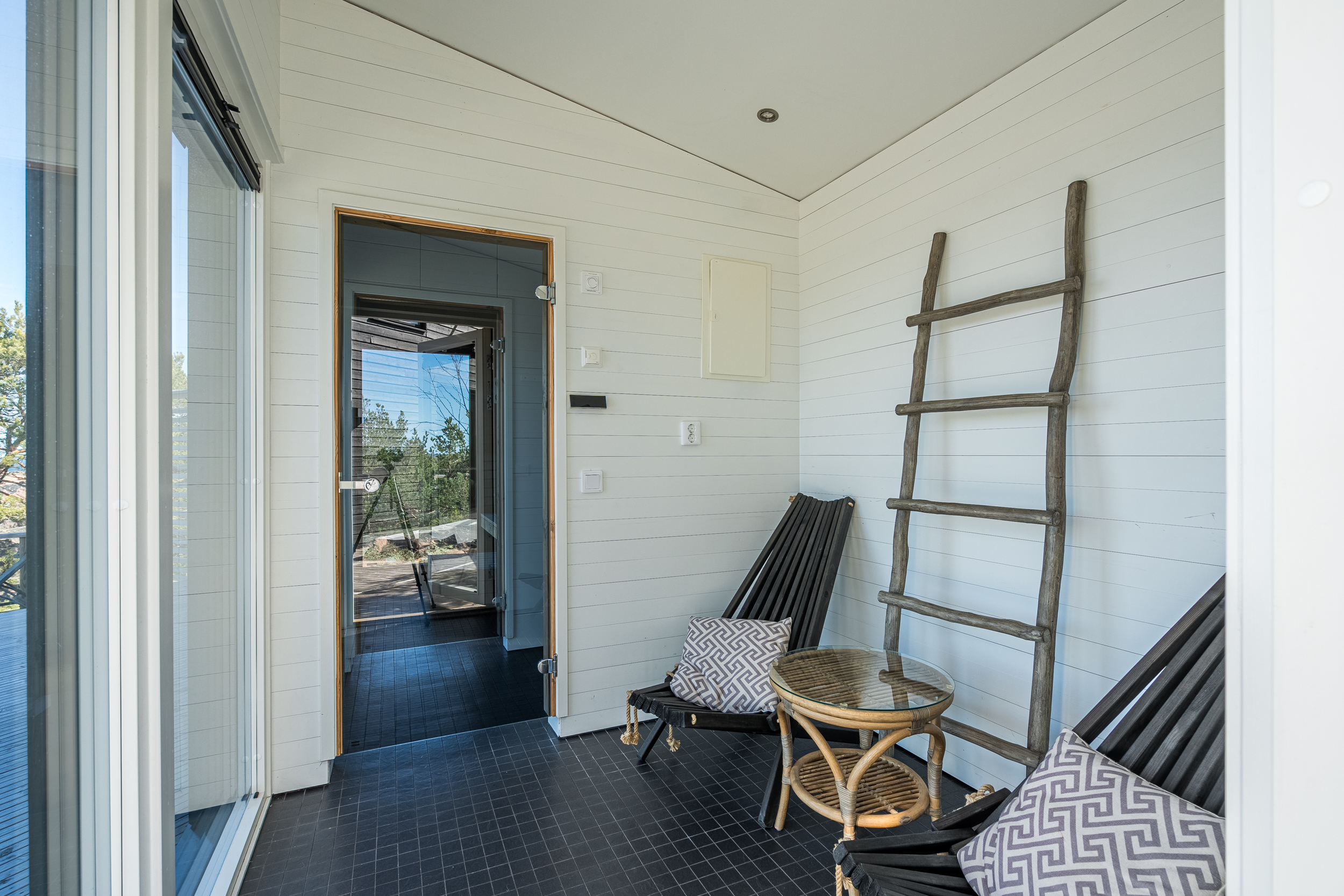 En omfattande altan på cirka 200 kvm omger huset och integreras harmoniskt med den omgivande naturen. På altanens nedre plan finns en ny jacuzzi för upp till sex personer, och intill altanen står en separat bastubyggnad från 2017 med dusch och relaxavdelning i direkt anslutning till och från altanen med utsikt över havet.