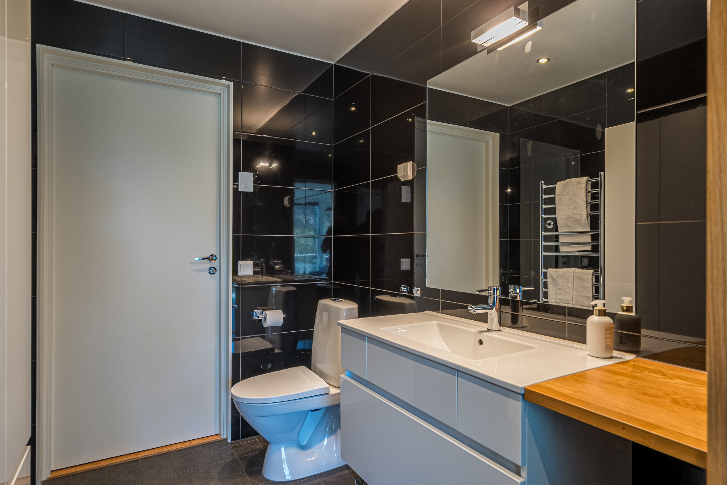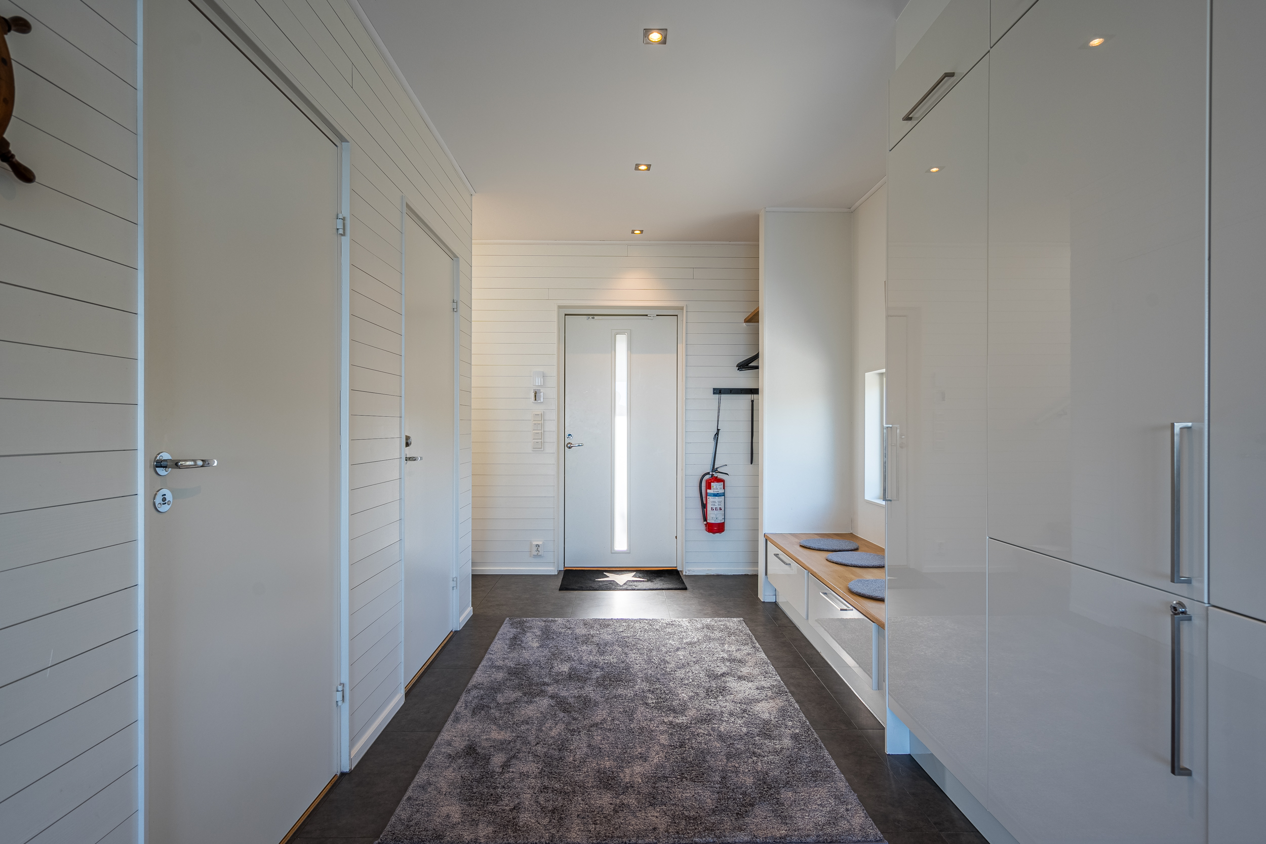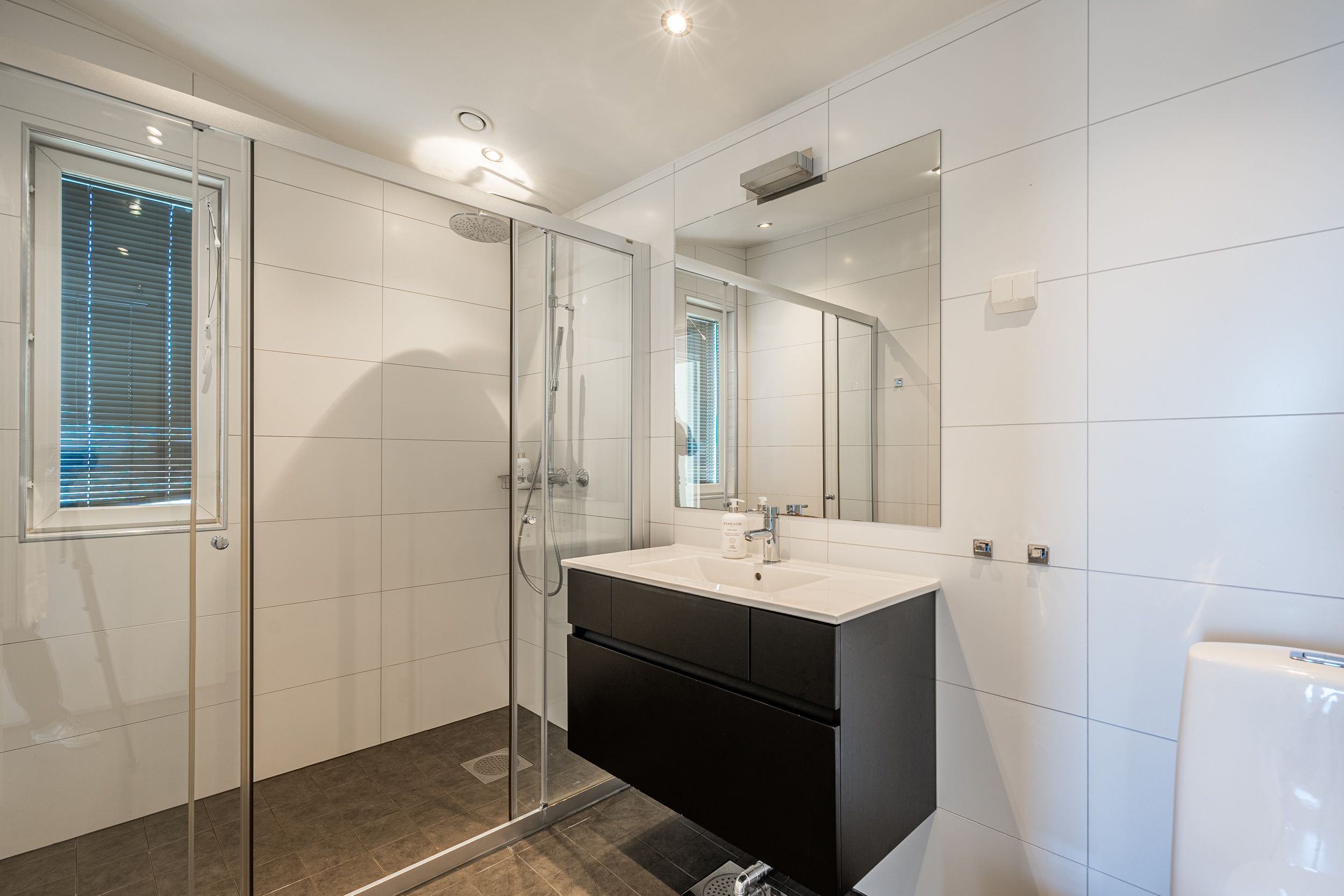 Klipphuset disponeras i 1,5 plan och uppfört 2012 av Komforthus Ab. Entréplanet inrymmer möblerbar hall, modernt och fullt utrustat kök med en ny elegant vinkyl & vardagsrum i öppen lösning med mysig braskamin, förvaringsutrymmen och Masterbedroom med anslutande badrum inkl. dusch, toalett, tvättmaskin och torktumlare. I det övre planet disponeras ytterligare två sovrum, bägge med privat badrum med toalett & dusch samt en möblerbar hall/ kontorsdel med utgång till balkong. Alla sovrum har gott om förvaring och/eller klädgarderob. Därtill i övre planet finns sängskåp med 2 extrabäddar, hotellstandard premium från capacity bed.