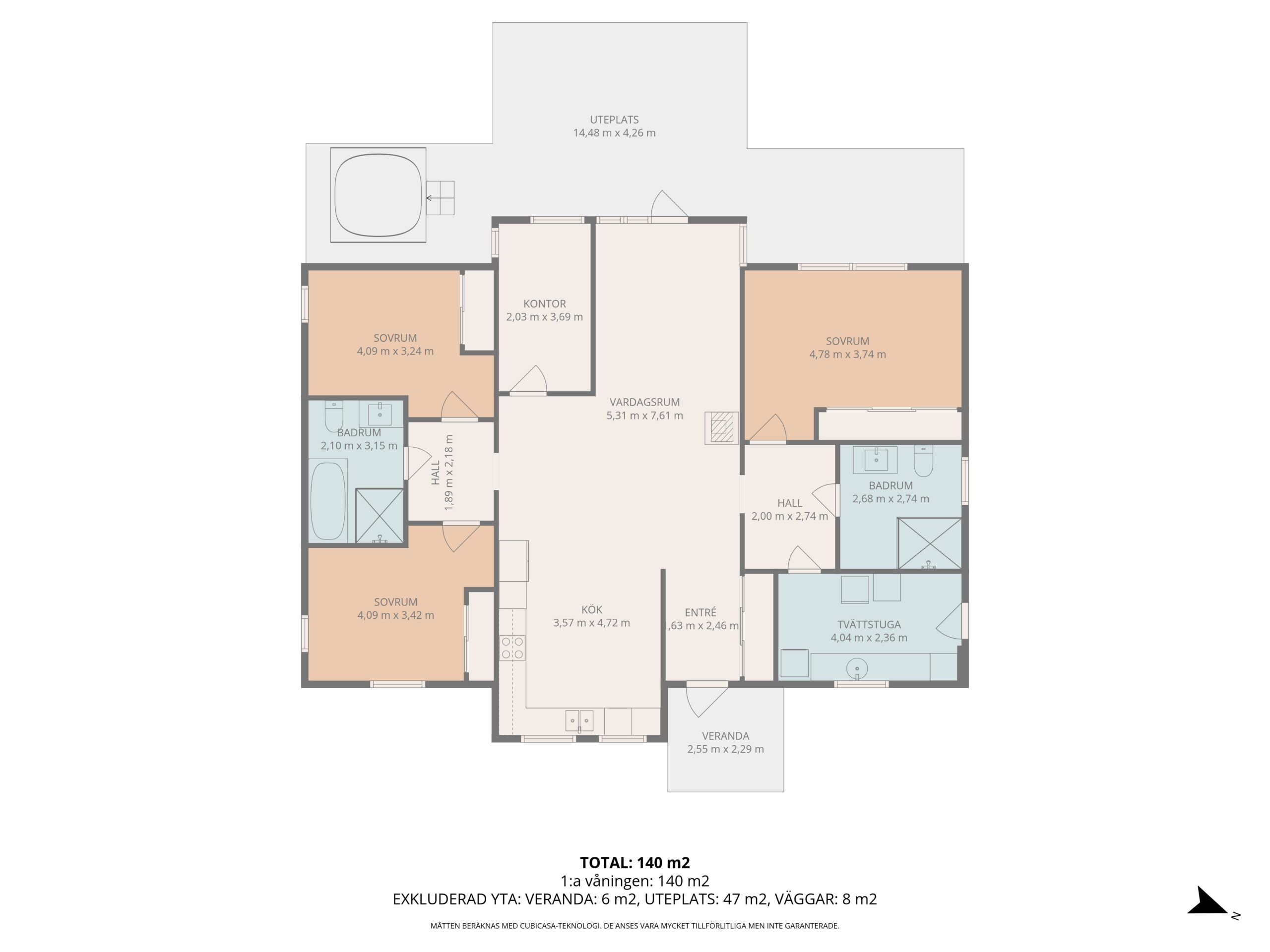 Antal rum: 5 (vardagsrum delat till mindre kontorsyta) R+K