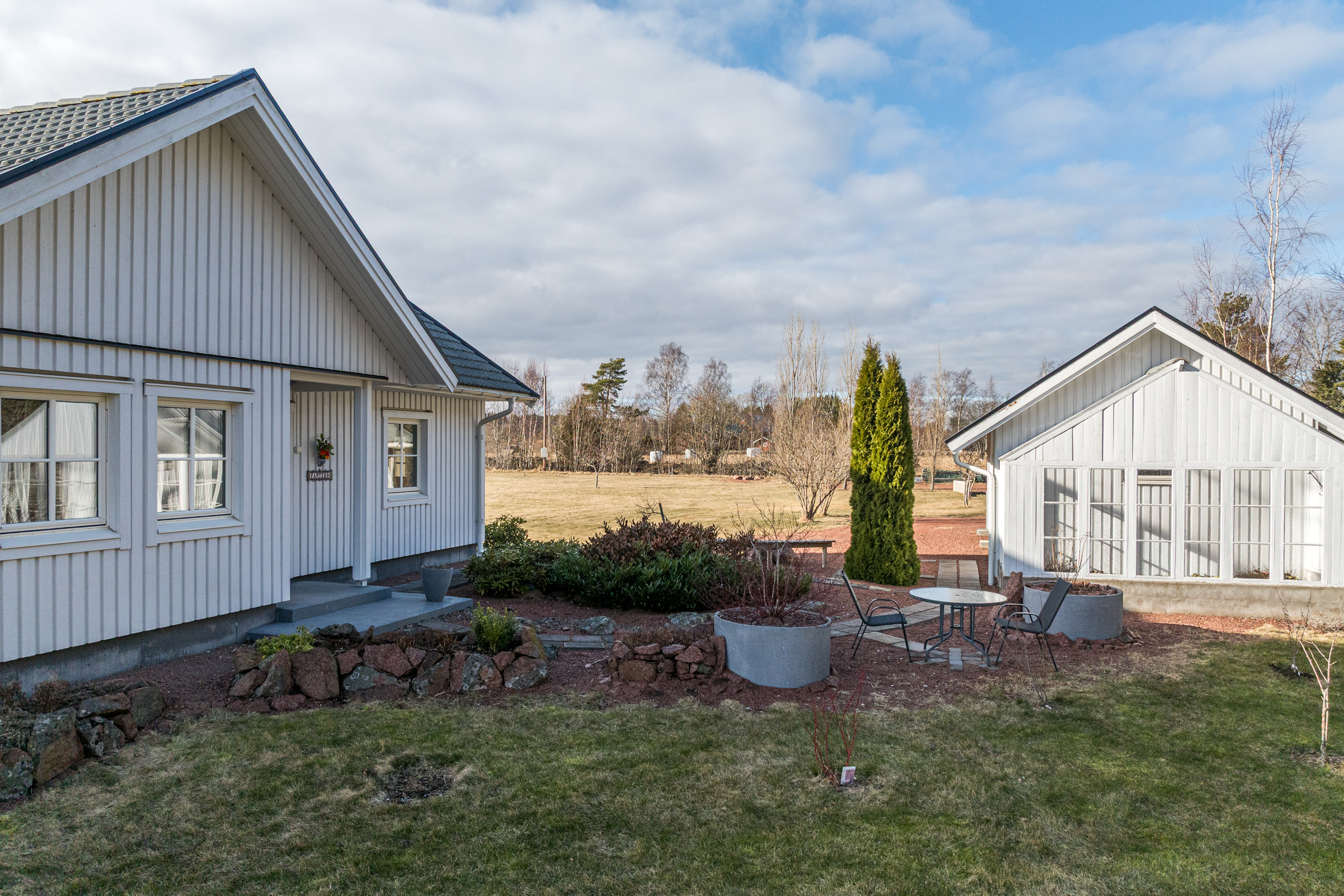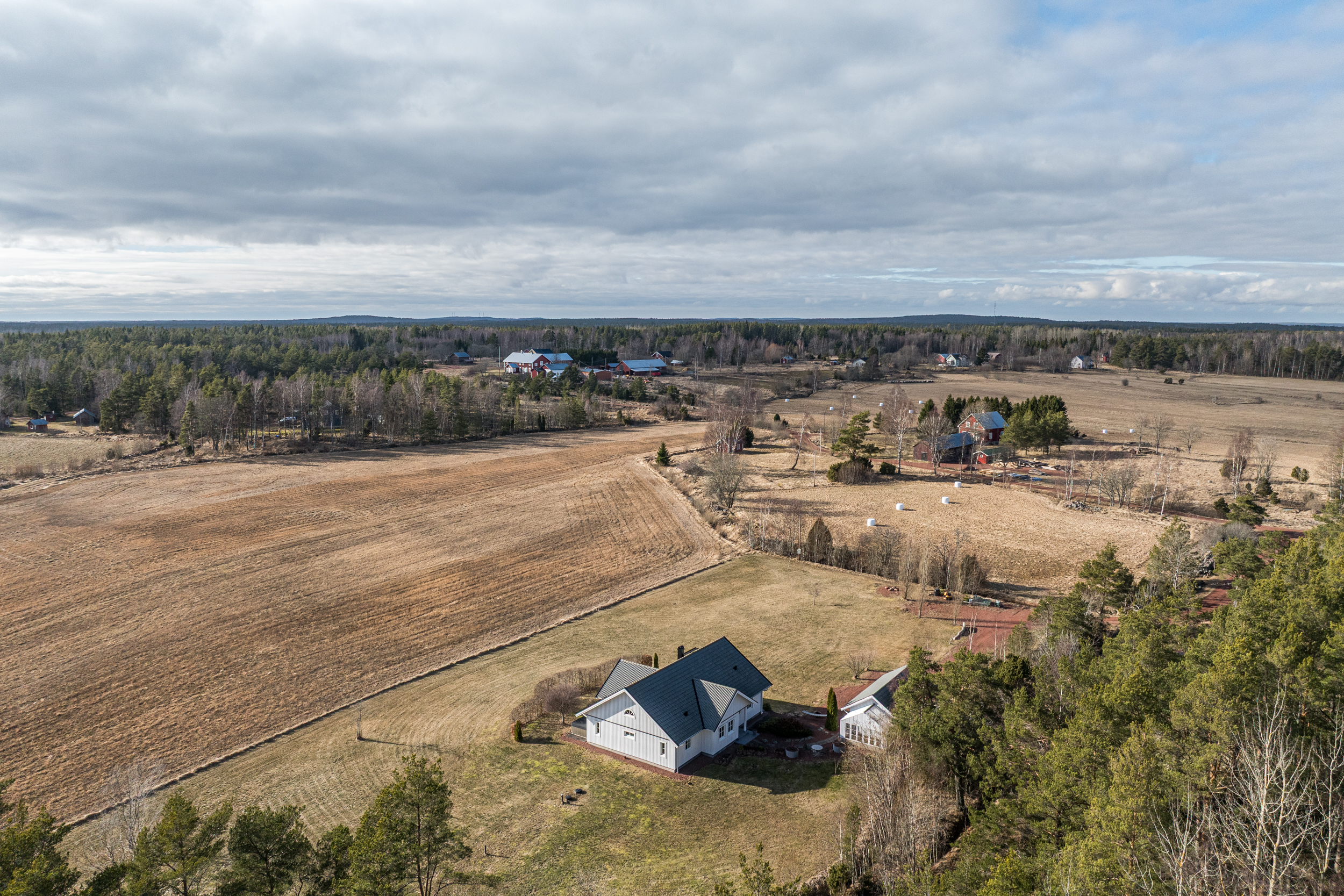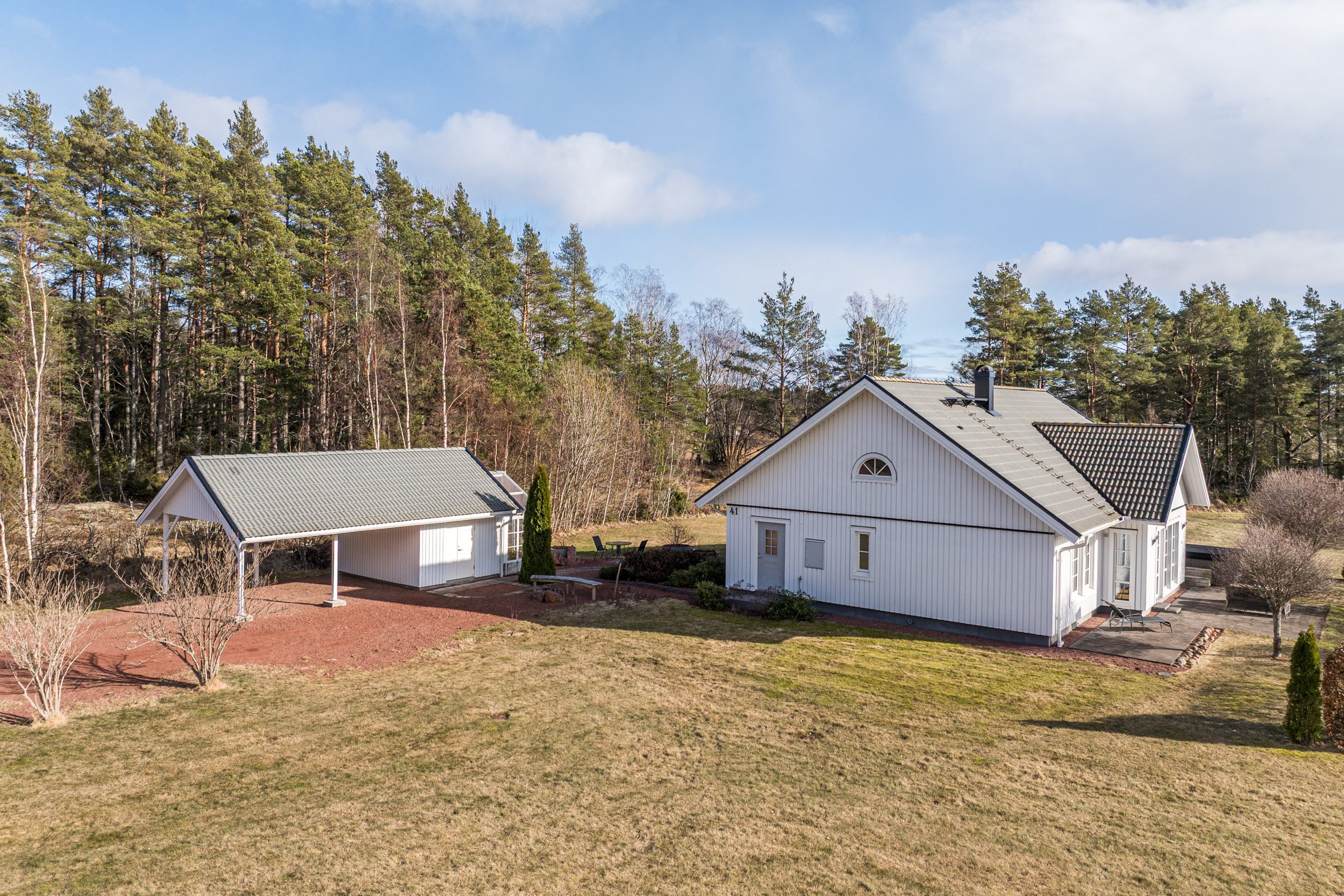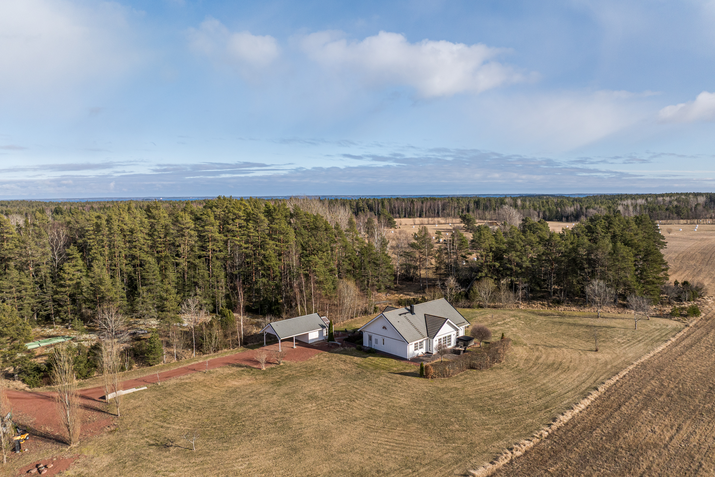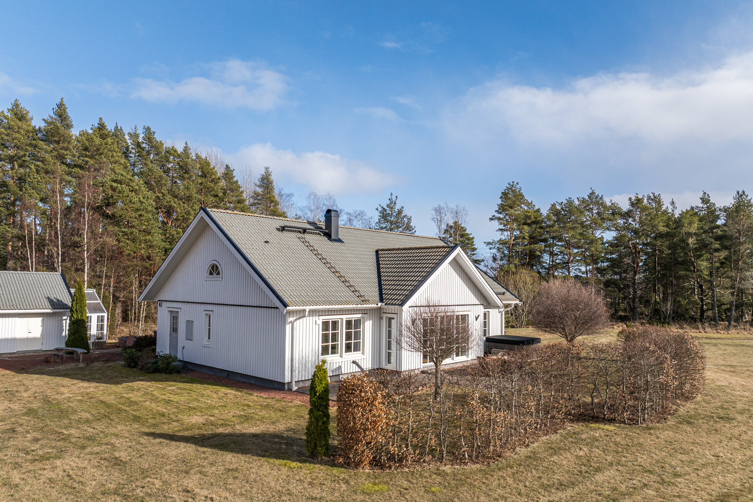 På ett lugnt och naturnära läge i Vessingsboda, Lemland, erbjuds detta välplanerade och genomgående moderna egnahemshus uppfört 2013–2014 av etablerade Myresjöhus. Bostaden omfattar cirka 140 m² i ett plan och erbjuder ett bekvämt och lättskött boende där funktion, trivsel och kvalitet samspelar. Fastigheten kompletteras av fristående carport med tillhörande rymligt förråd. Läget är avskilt och rogivande med skog, öppna landskap och en fri, obruten vy över åkermark som ger en påtaglig känsla av rymd och stillhet. Här bor man med naturen som närmaste granne, samtidigt som service nås inom rimligt avstånd – cirka 7 km till skola och daghem, omkring 8 km till närmaste livsmedelsbutik och cirka 20 minuters bilfärd till Mariehamn.