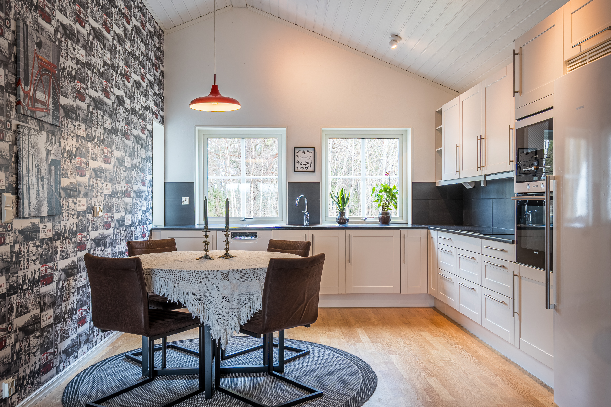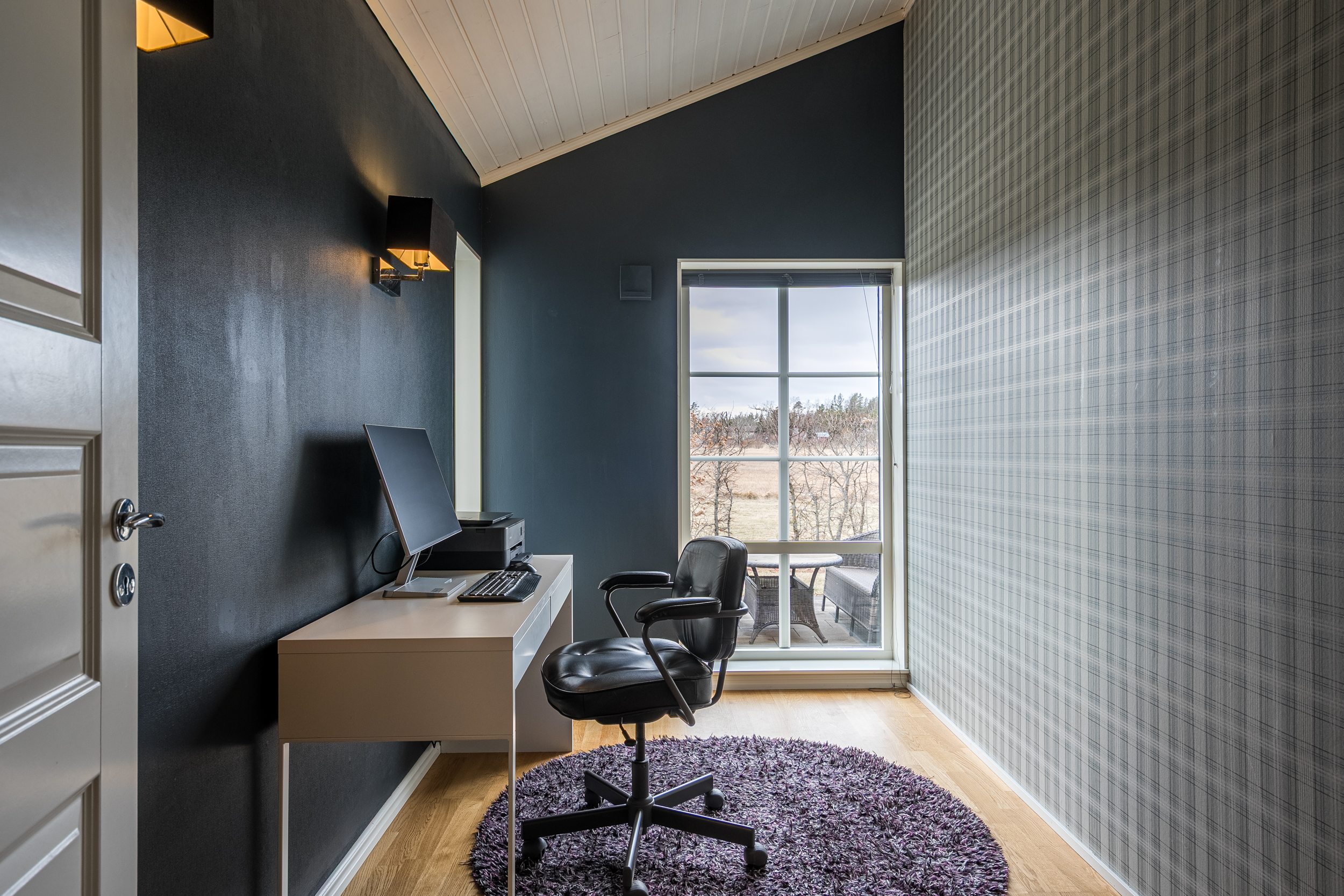 Bostadens hjärta utgörs av kök och vardagsrum i öppen och sammanhållen planlösning, vilket skapar ett naturligt flöde mellan matplats och sällskapsytor. Här finns god rymd och flexibilitet, med möjlighet att anpassa möbleringen efter behov. I anslutning till vardagsrummet finns ett separat arbetsrum som tillkommit genom en omdisponering av planlösningen – ett värdefullt tillskott som lämpar sig väl som hemmakontor, gästrum eller hobbyutrymme.