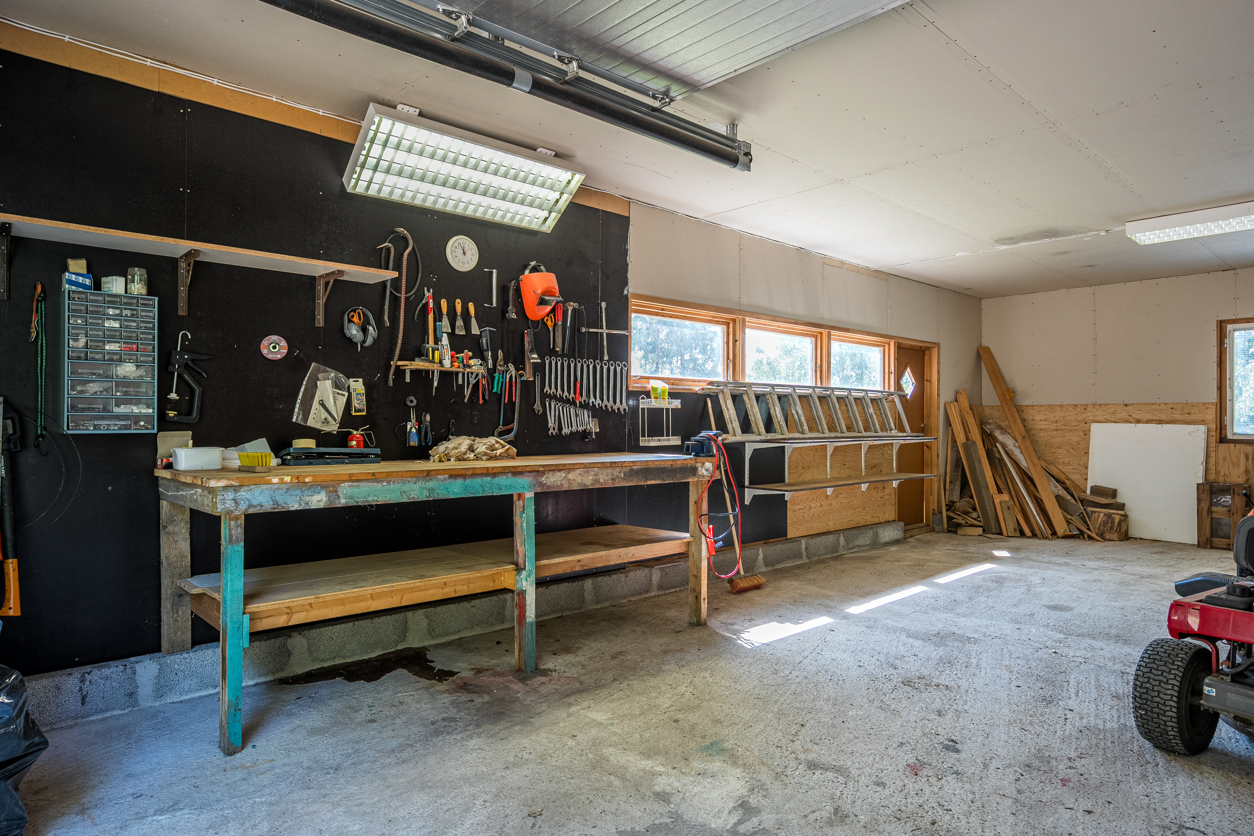 Fristående garagebyggnad uppförd 1990-tal, väl tilltagen som inrymmer plats för bil samt övriga fordon eller hobbyintressen. Garaget är isolerat men har ingen värmekälla i dagsläget.