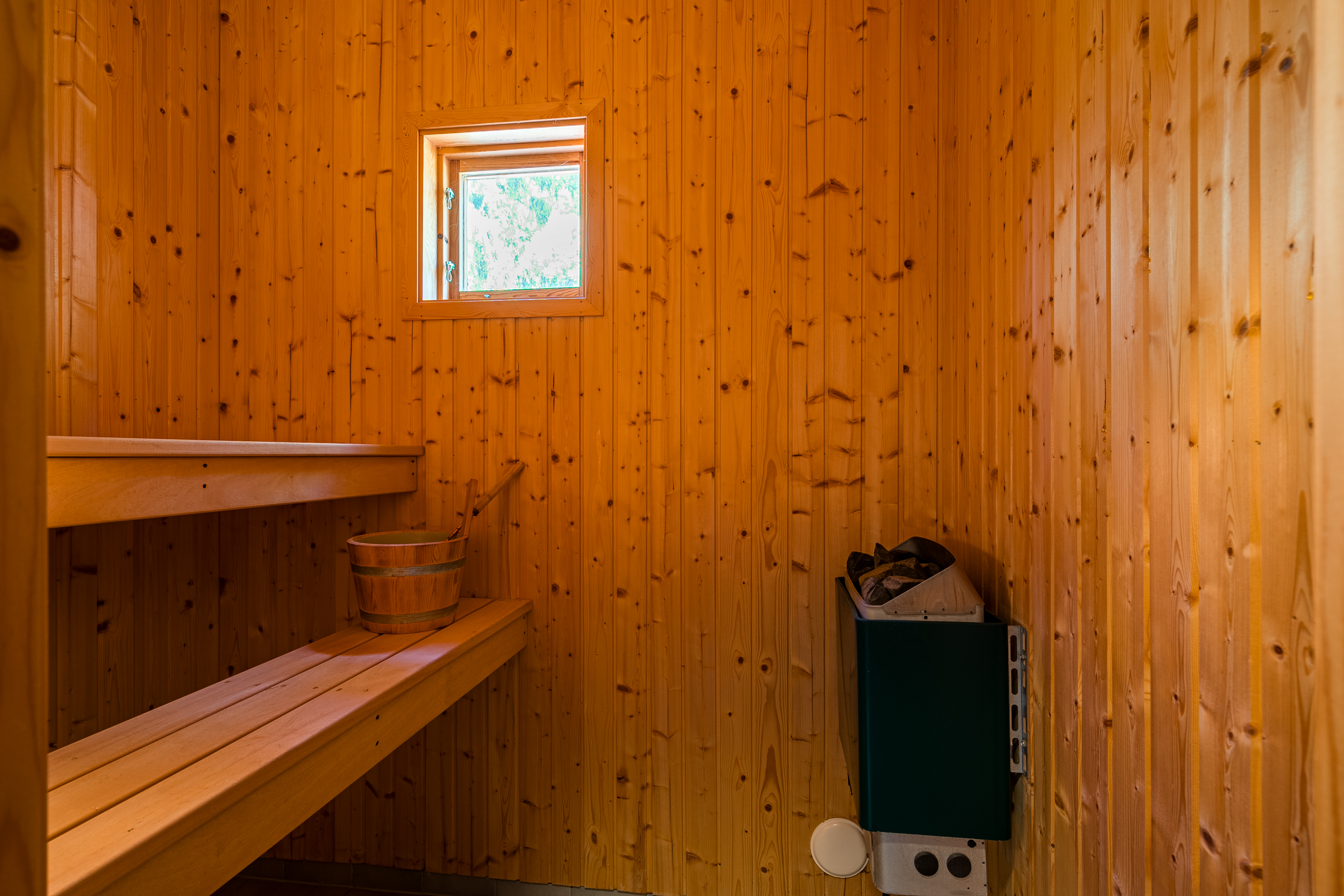 Fristående bastubyggnad med vedeldad bastu.