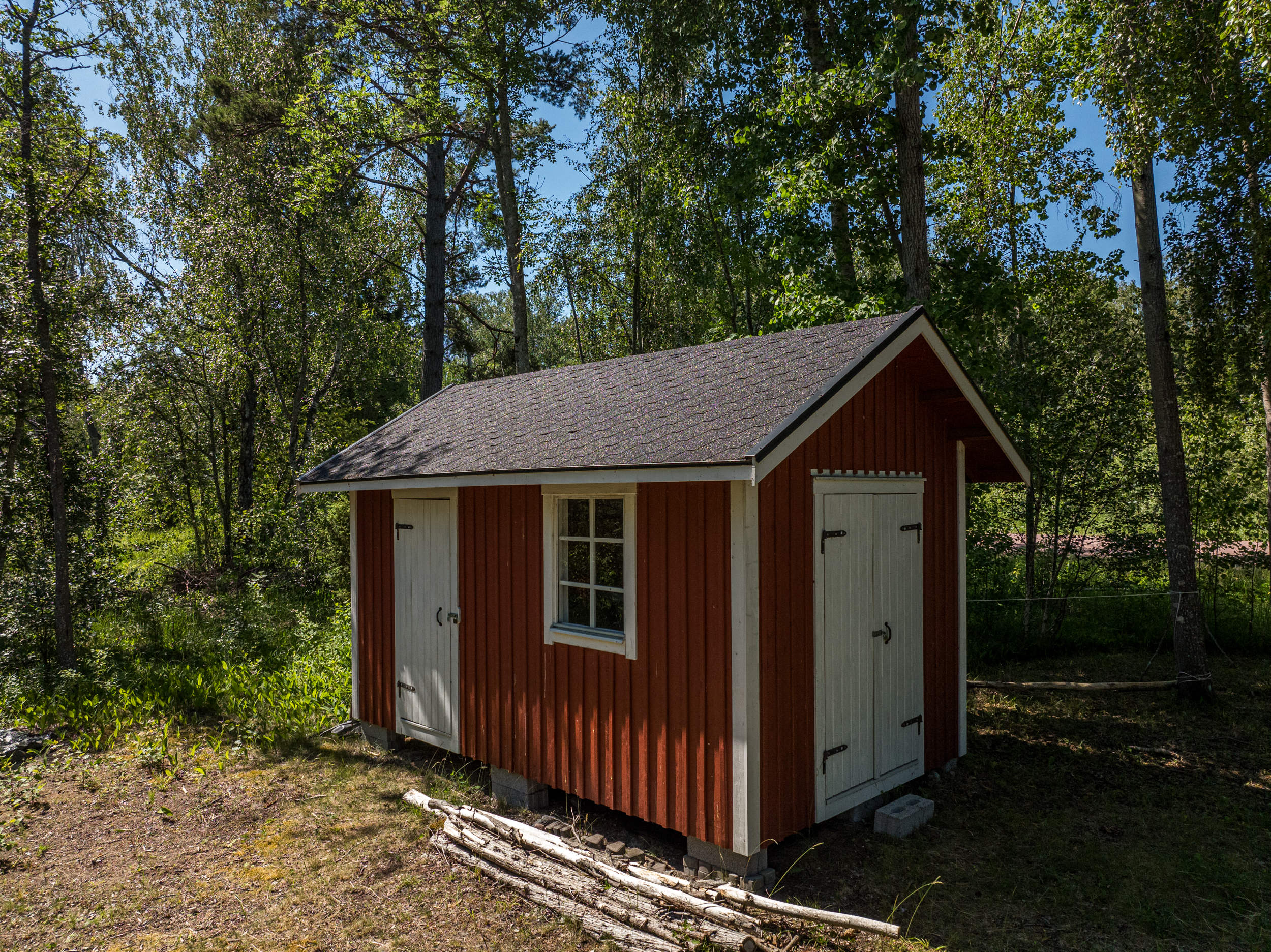 På gården finns även en praktisk komplementbyggnad – ett rejält uthus/förråd för gott om förvaringsutrymme. Fastigheten är ansluten till Ålands Elandelslag och har kommunalt vatten indraget. Avlopp till sluten tank. Därtill är fiber beställt och ingår.