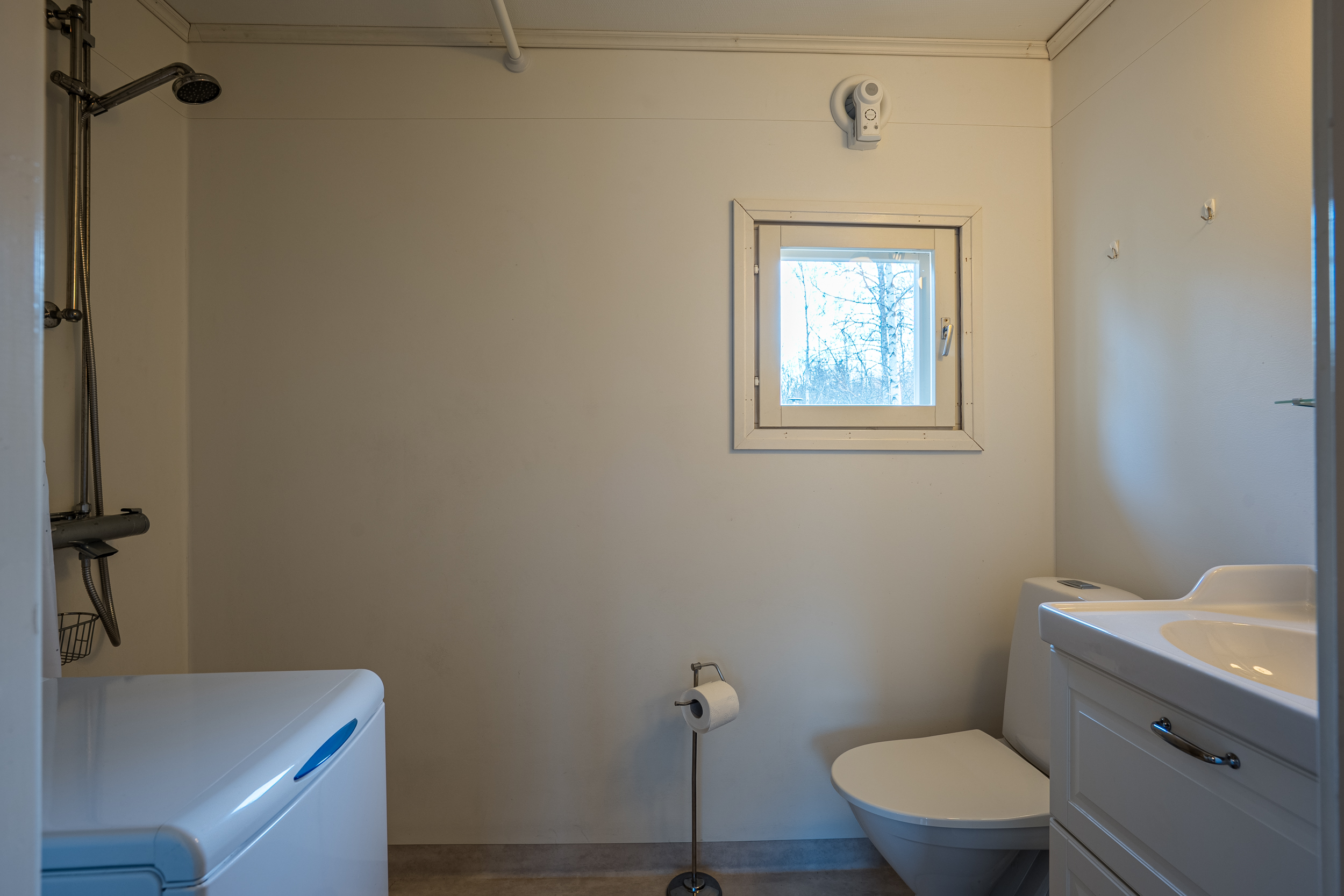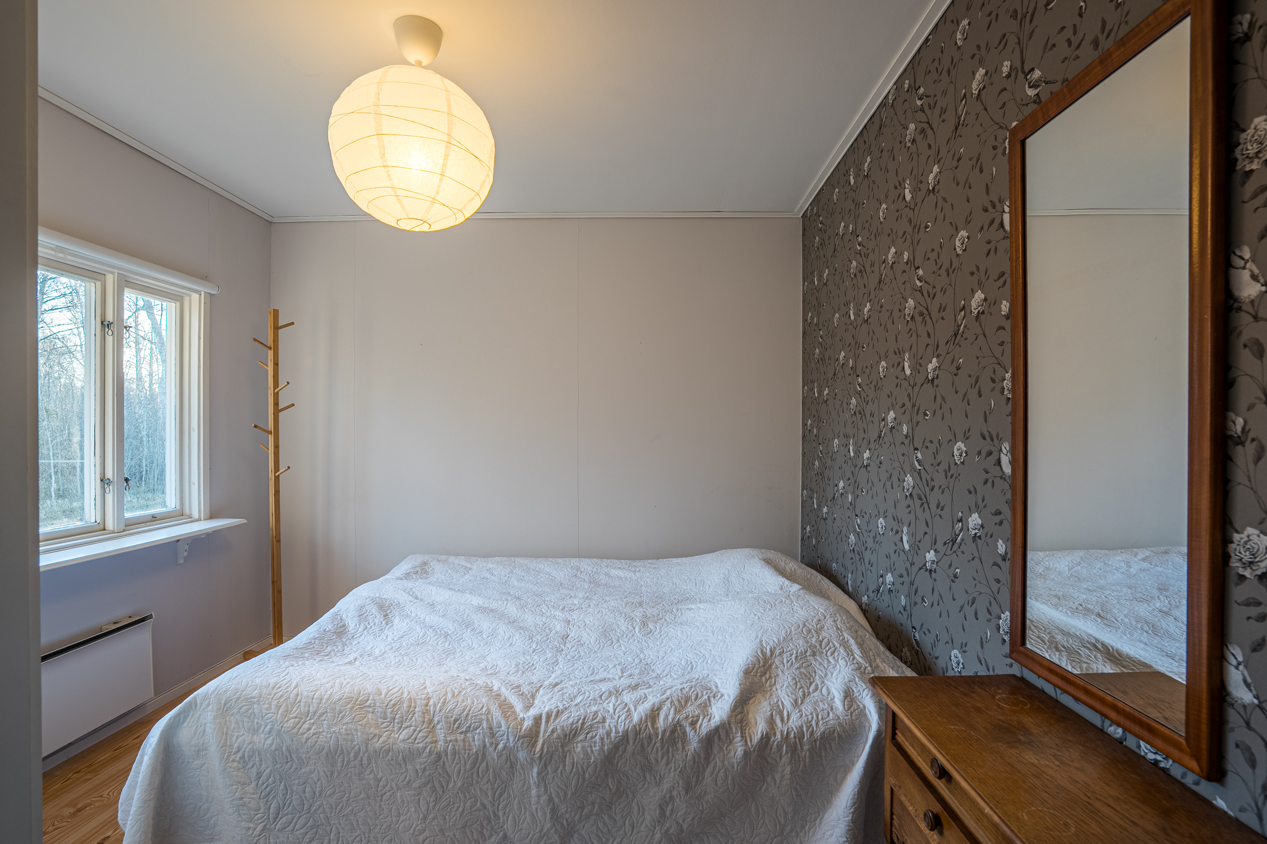 Stugan inrymmer förutom kök och vardagsrum även två sovrum som erbjuder plats för både familj och gäster. Det fräscha badrummet är renoverat i modern stil och utrustat med dusch, toalett, handfat med kommod samt tvättmaskin som ingår i försäljningen (det mesta av lösöret ingår).