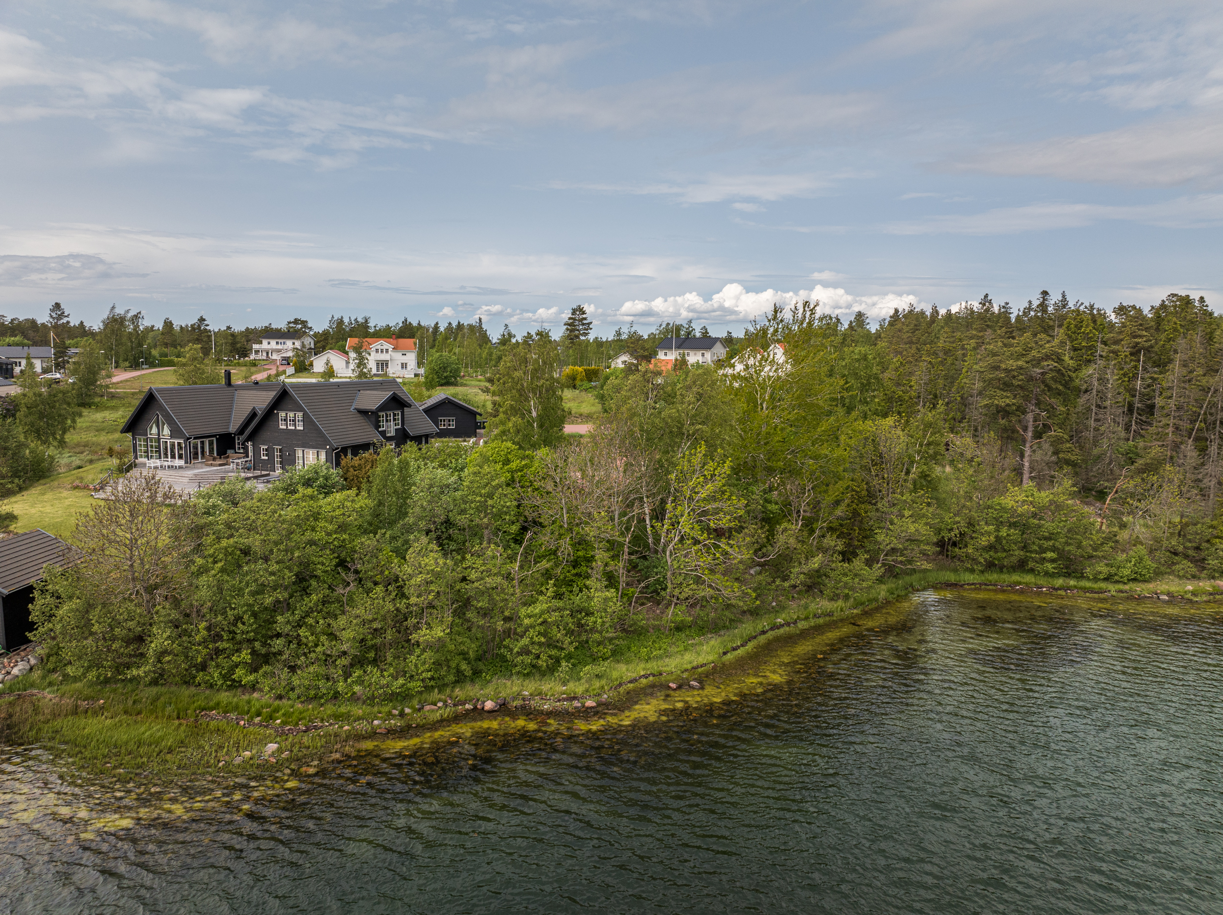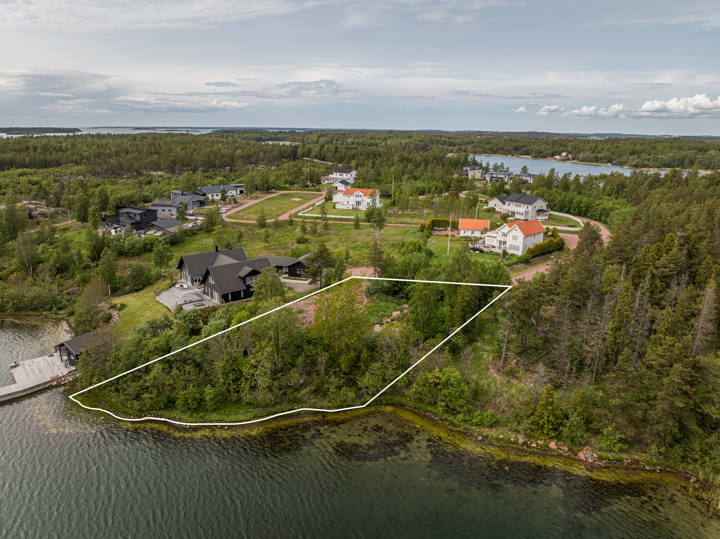 Tomten om hela 2 310 kvadratmeter sträcker sig längs en privat strandlinje om cirka 45 meter . Här har förberedelser redan påbörjats med fyllnadsmassor, vilket ger en perfekt grund för att låta visionerna bli verklighet. Strandens unika karaktär, med grundare badvatten i östra delen och ett större djup i västra delen, gör platsen idealisk både för badliv och båtägande.