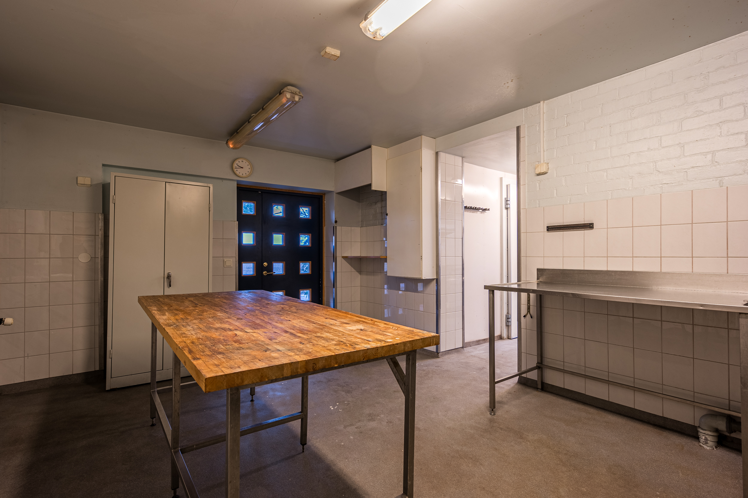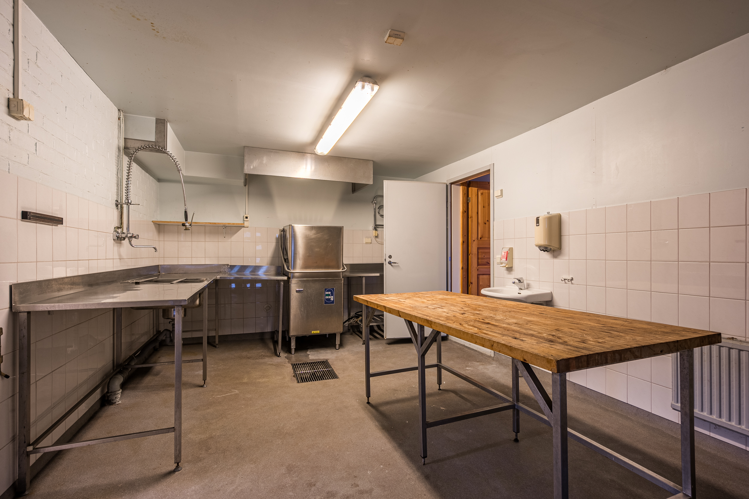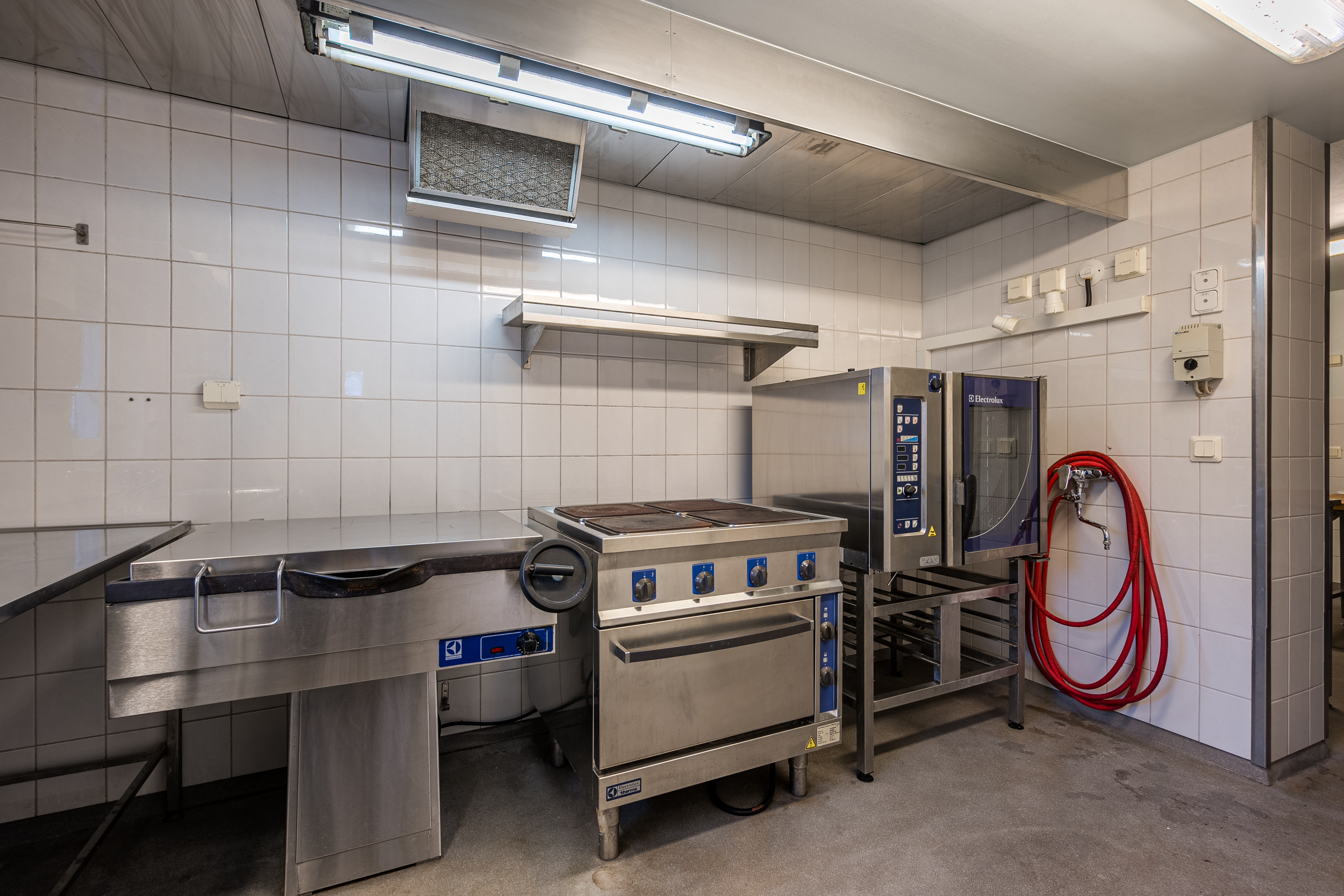 Entréplanets restaurangkök, som är redo för drift, är fullt utrustat med kylrum, tillredningsstationer och den fasta köksinredningen kvarstår. I övrigt vinkällare/servering, sociala utrymmen och entrén i relativt gott skick.
