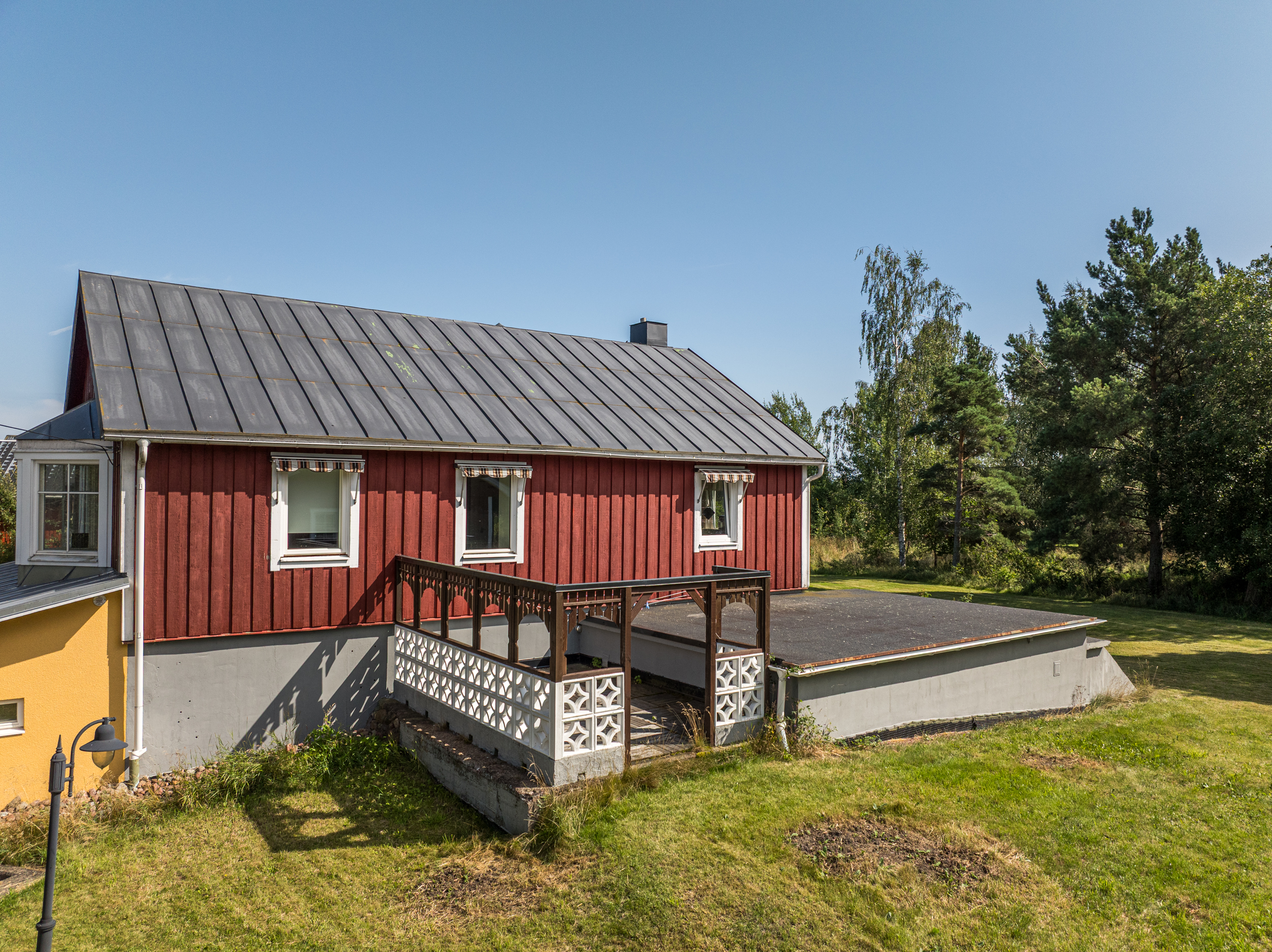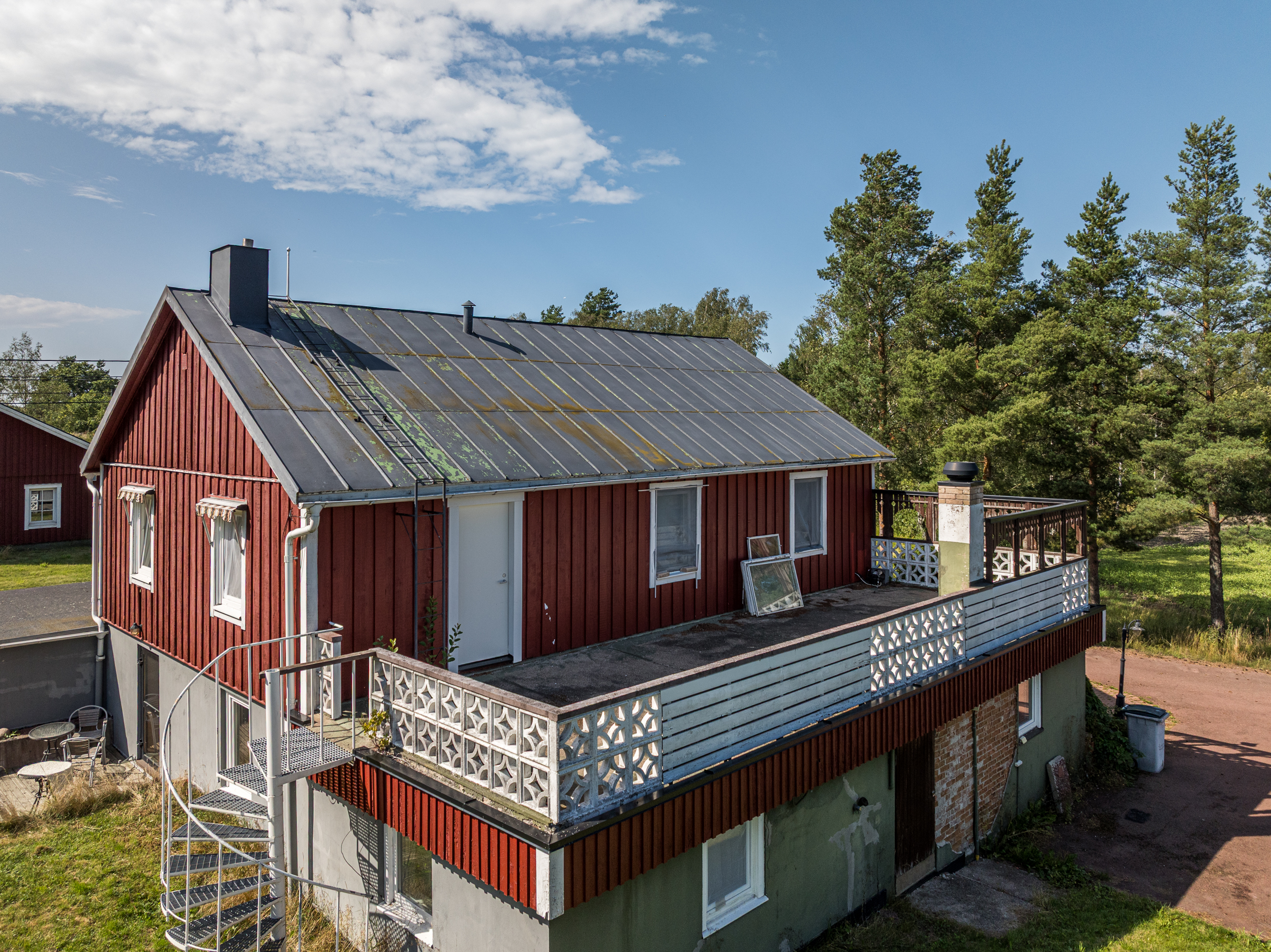 Huset uppfört i träkonstruktion ovan källare (delvis) och har en total uppvärmd yta om ca 198 kvm (enligt energideklarationen), varav övre våningsplanet är ca 95 kvm. Ytterfasad mestadels målad träpanel samt en del rappad, plåt- och filttak. Bostadshuset uppvärms med vattenburen centralvärme från äldre oljepanna. Fönster har förnyats i etapper för att bl.a. förbättra energieffektivitet, i övrigt finns renoveringsbehov.