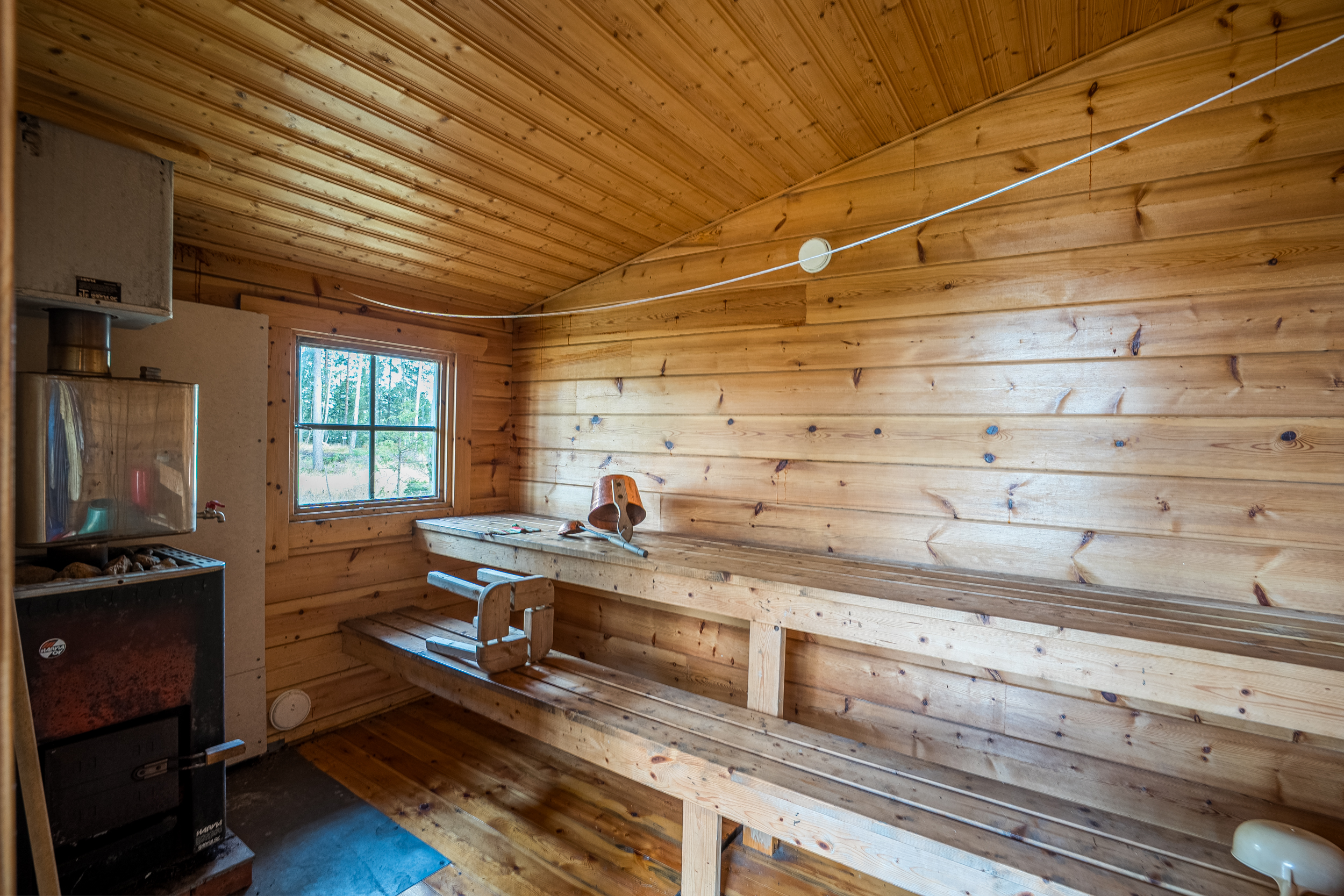 Utöver fritidshuset så finns även en fristående förrådsbyggnad samt en fristående bastubyggnad med vedeldad bastuspis och ett möjligt sovrum.