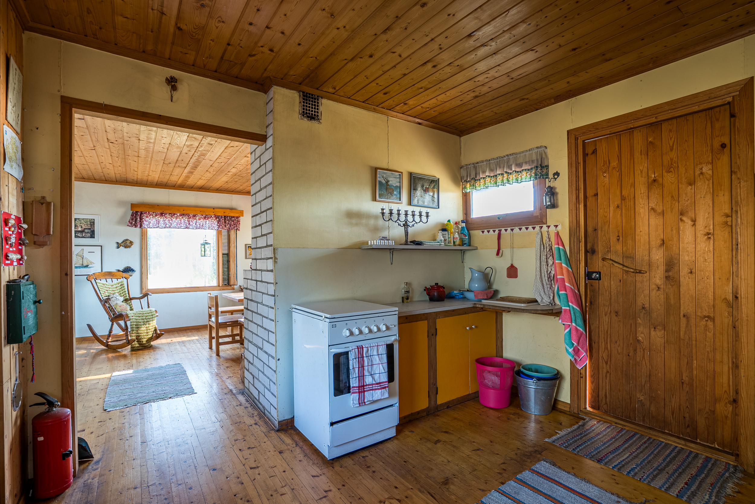 Teknik: Vedspisen behöver tillsyn av sotare. Även gasspis och värmare behöver ses över. Kostnad för elanslutning hos Ålands elandelslag är ca. 2430 € per den 15.09.2025.