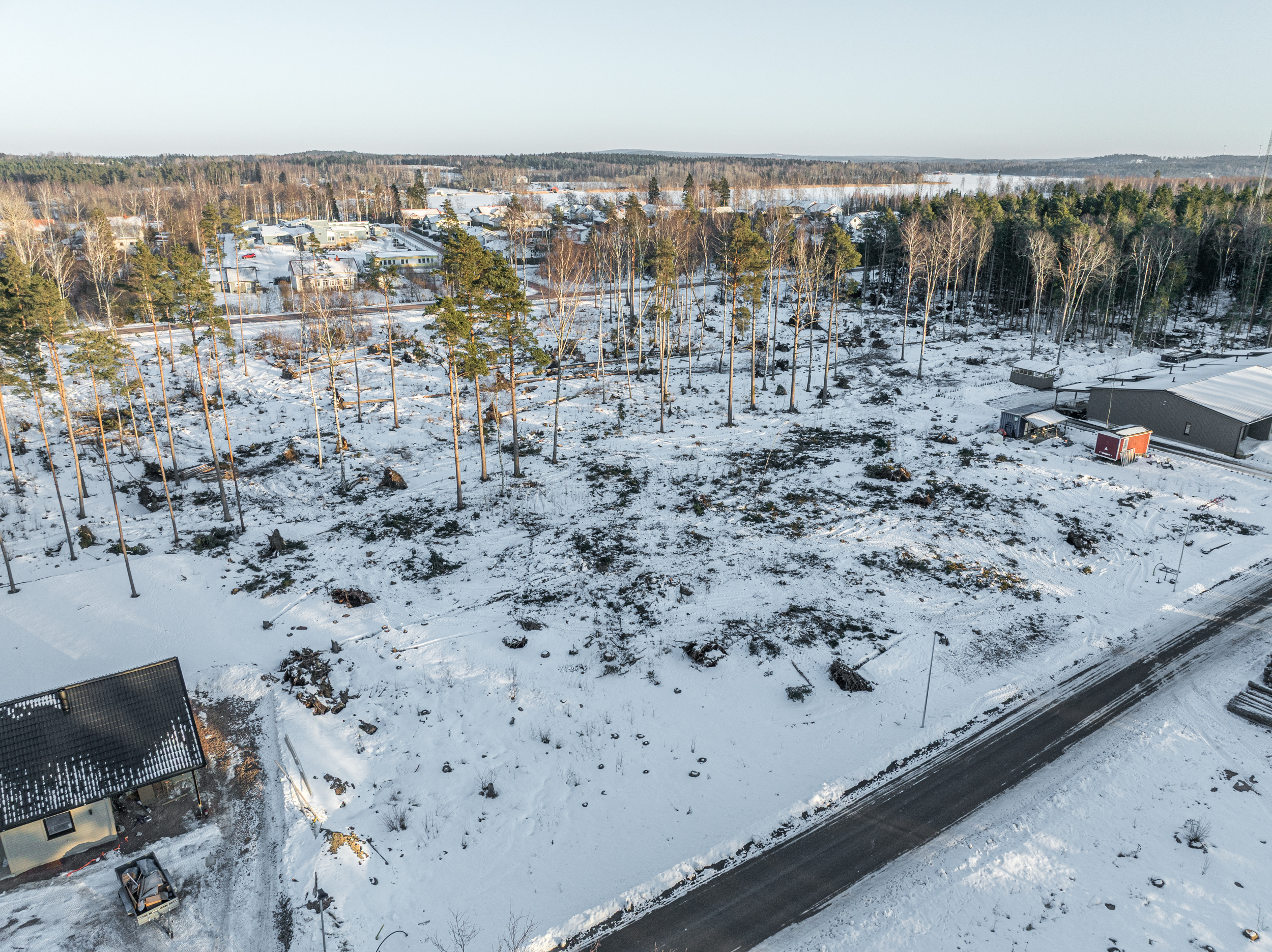 Varje bostad disponerar carport med tillhörande förråd om cirka 4,1 kvm samt en rymlig terrass. Tomten färdigställs med asfalterad infart och parkeringsytor, häck mot gatan och grannfastigheterna samt gräsmatta som ger en lättskött och trivsam utemiljö.