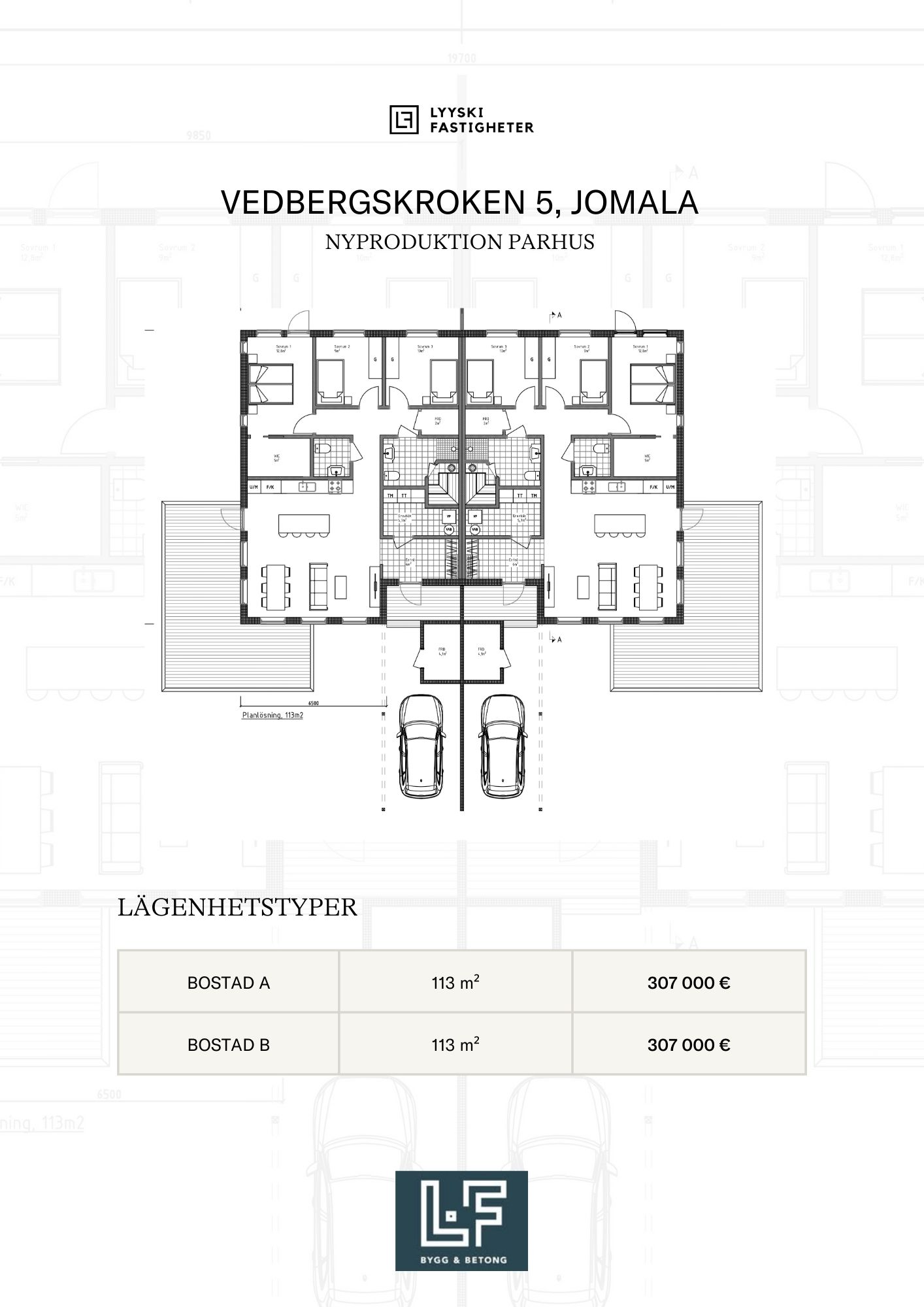 Nu erbjuds möjlighet att förvärva ett stilrent och genomtänkt nyproducerat parhus i Kalmarnäs– ett område som på kort tid etablerat sig som ett av de mest eftertraktade i Jomala. Projektet är under uppförande av LF Bygg & betong. Planerad inflytt hösten 2026. Här kombineras modern arkitektur, energieffektiv teknik och hållbara materialval i ett hem byggt för långsiktig kvalitet.
