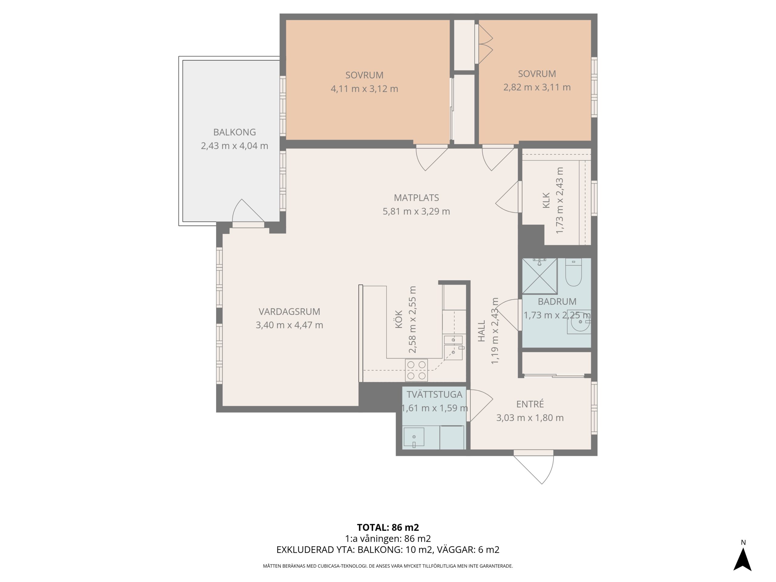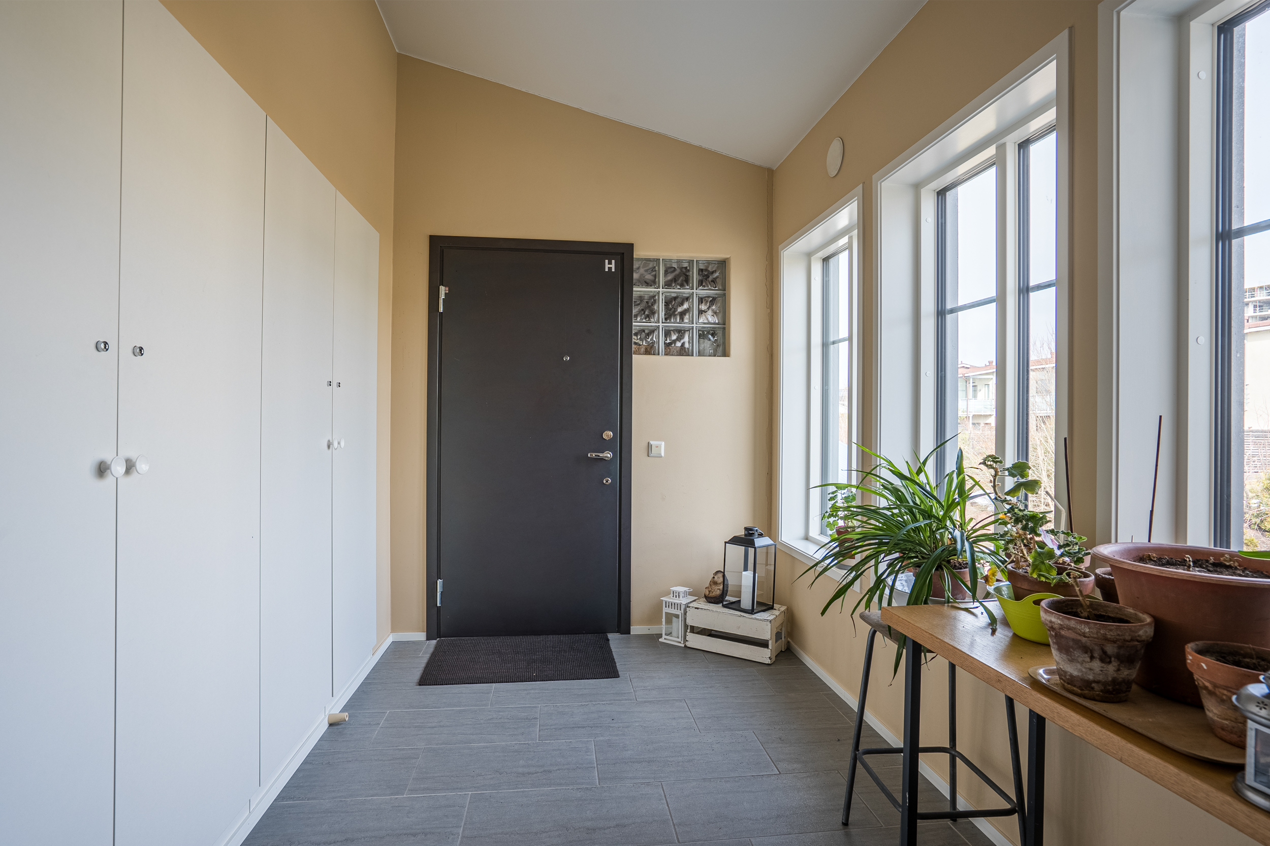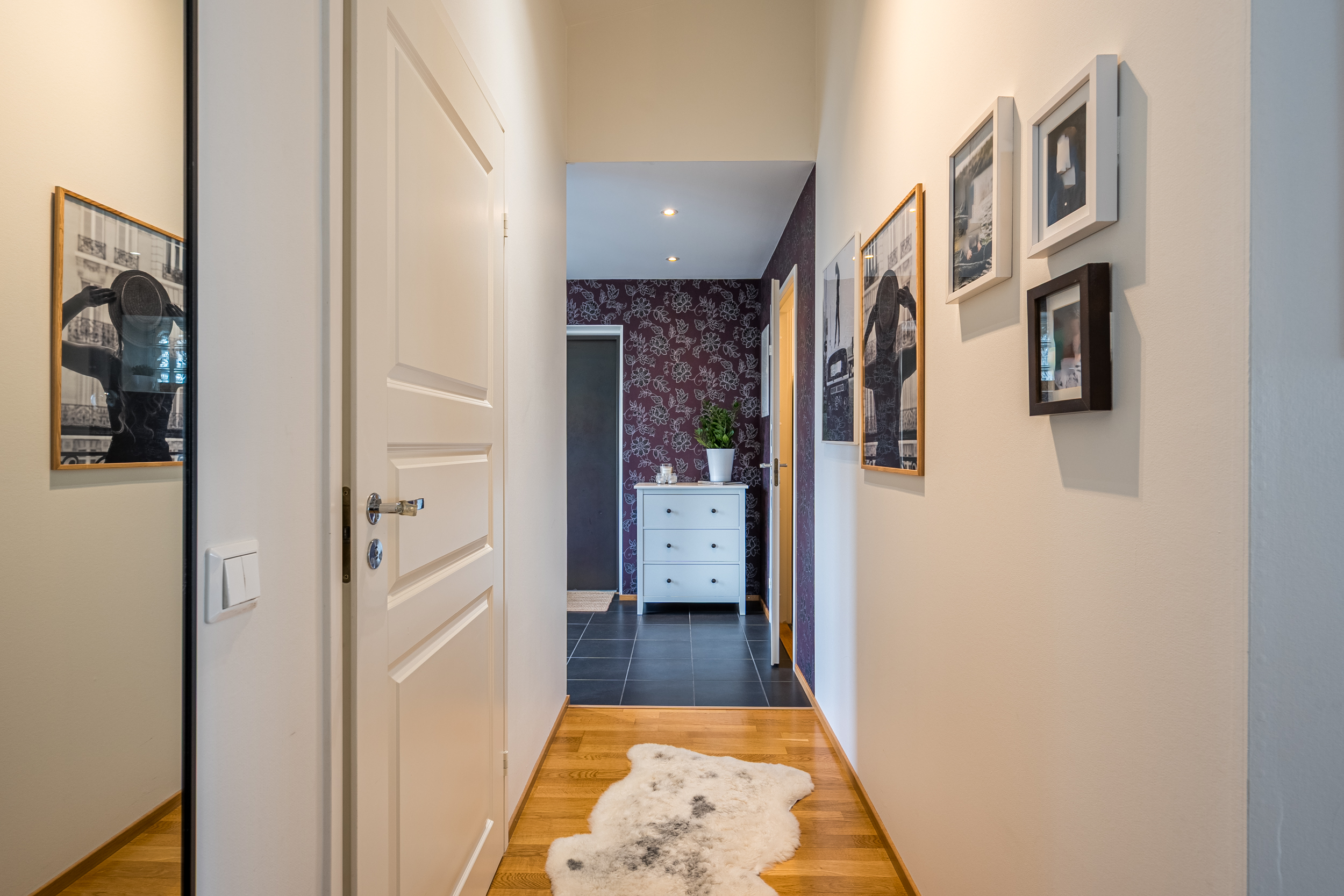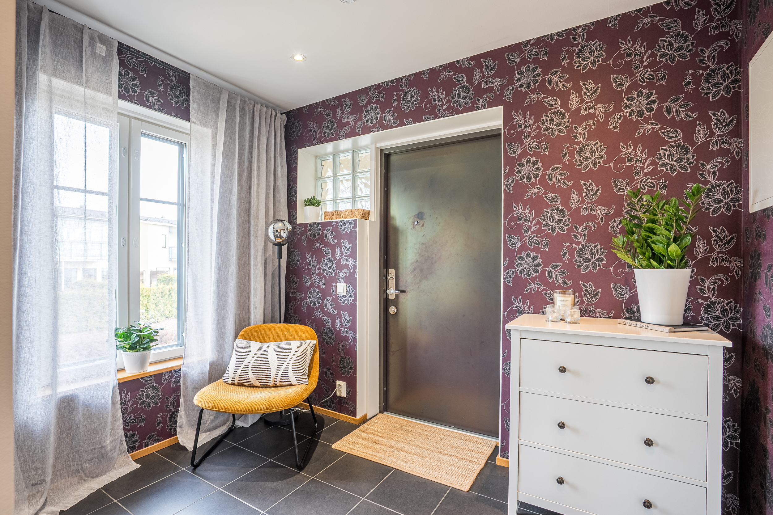 På andra våningen i ett mycket välskött bostadsbolag erbjuds denna ljusa och välplanerade lägenhet om 83 m². Ett boende där funktion, rymd och läge samverkar på ett sätt som märks direkt när man kliver in. Entrén är generös och välkomnande, med klinkergolv, god förvaring och en separat tvättdel i direkt anslutning – en detalj som gör skillnad i vardagen.